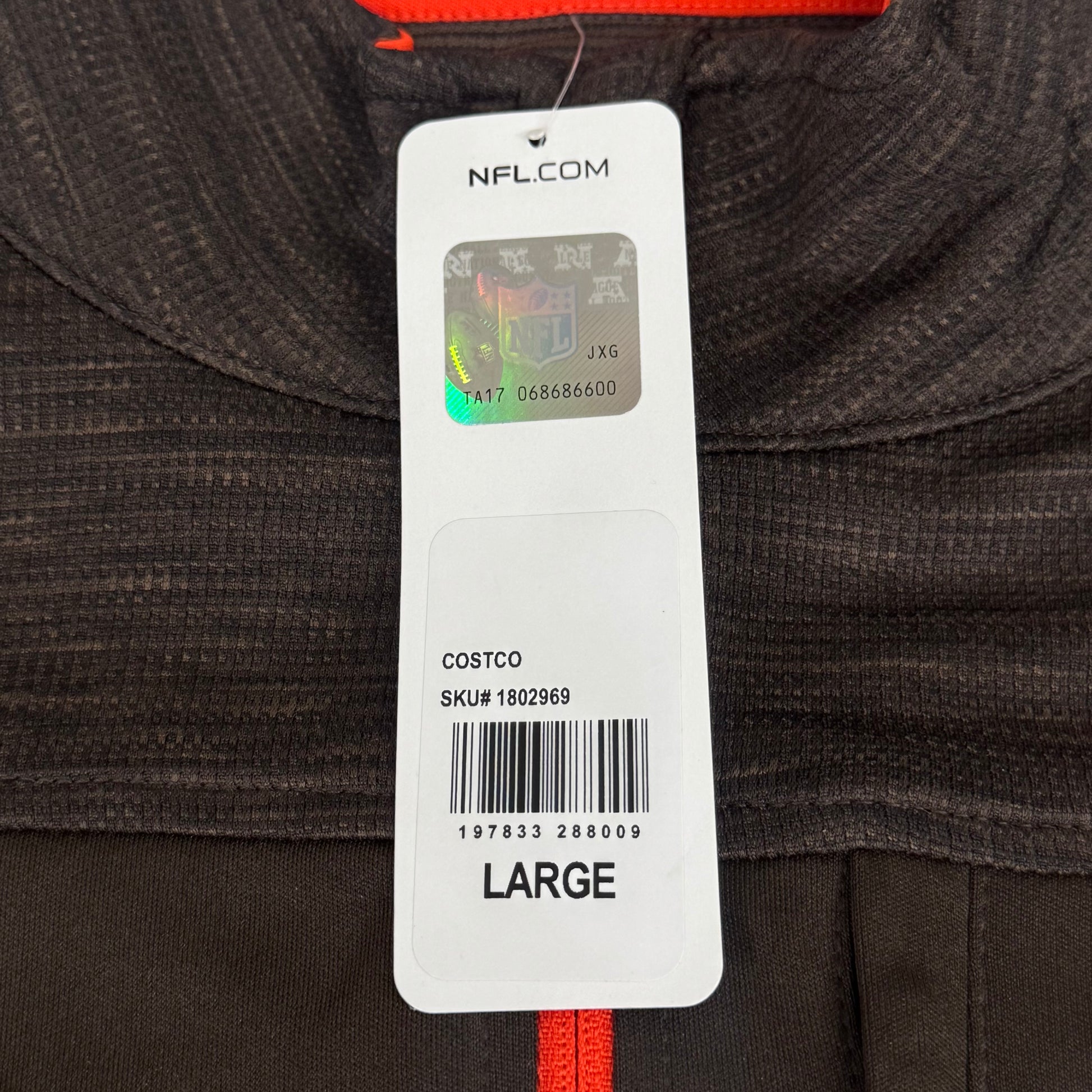NFL Cleveland Browns Quarter Zip Pullover Shirt Long Sleeve L Brown 1802969
