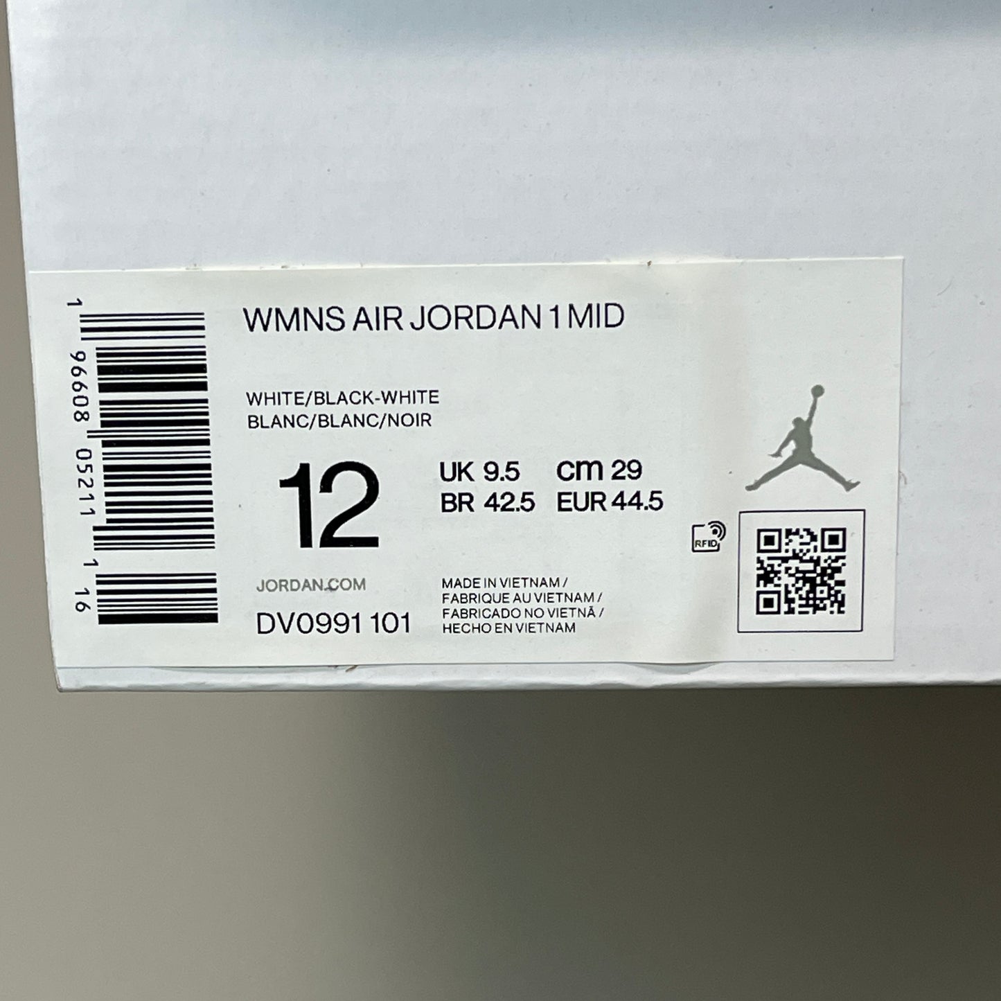 NIKE AIR JORDAN 1 Mid Panda Women's Sz 12 Black / White DV0991-101 (New)