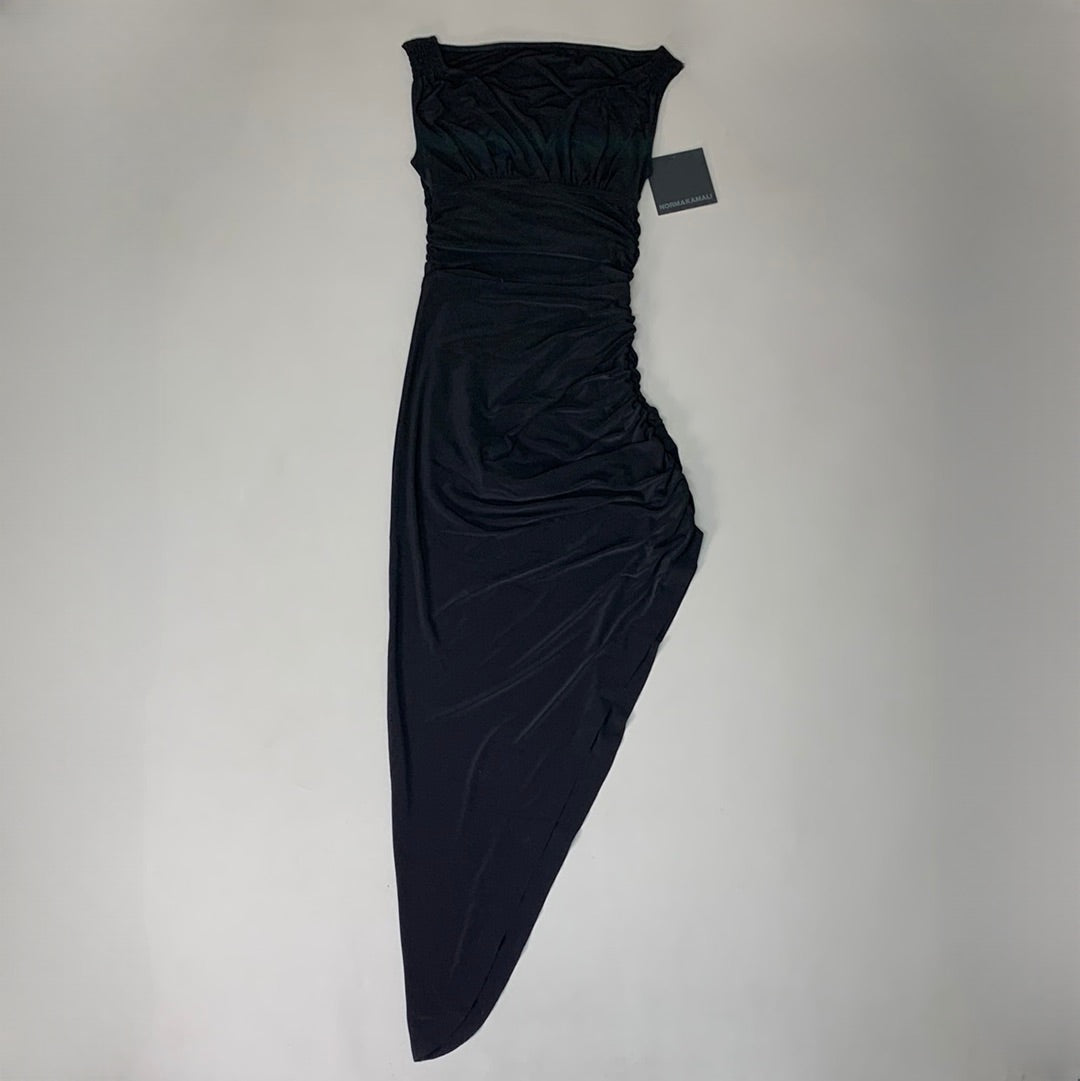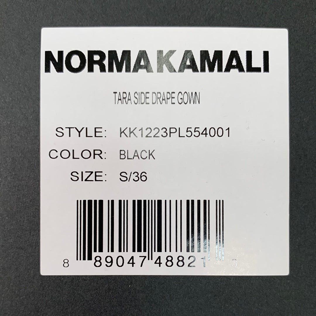 NORMA KAMALI Tara Side Drape Gown Sz S/36 Black KK1223PL554001 (New)