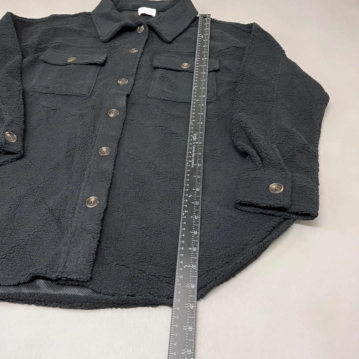PINK LILY Fleece Button-up Jacket Women's Sz L Black PL177 (New)