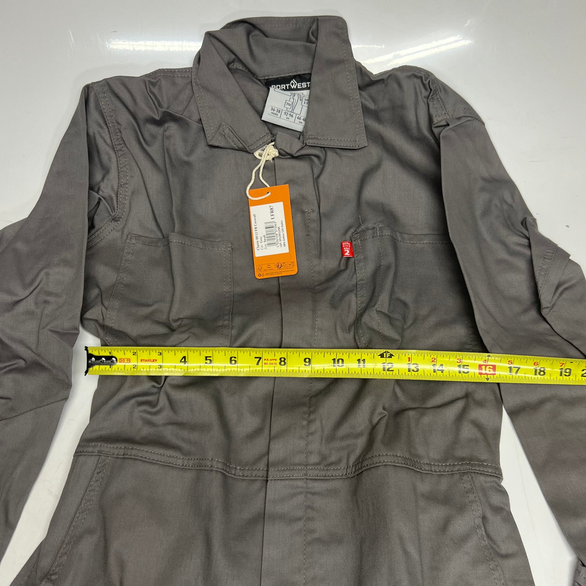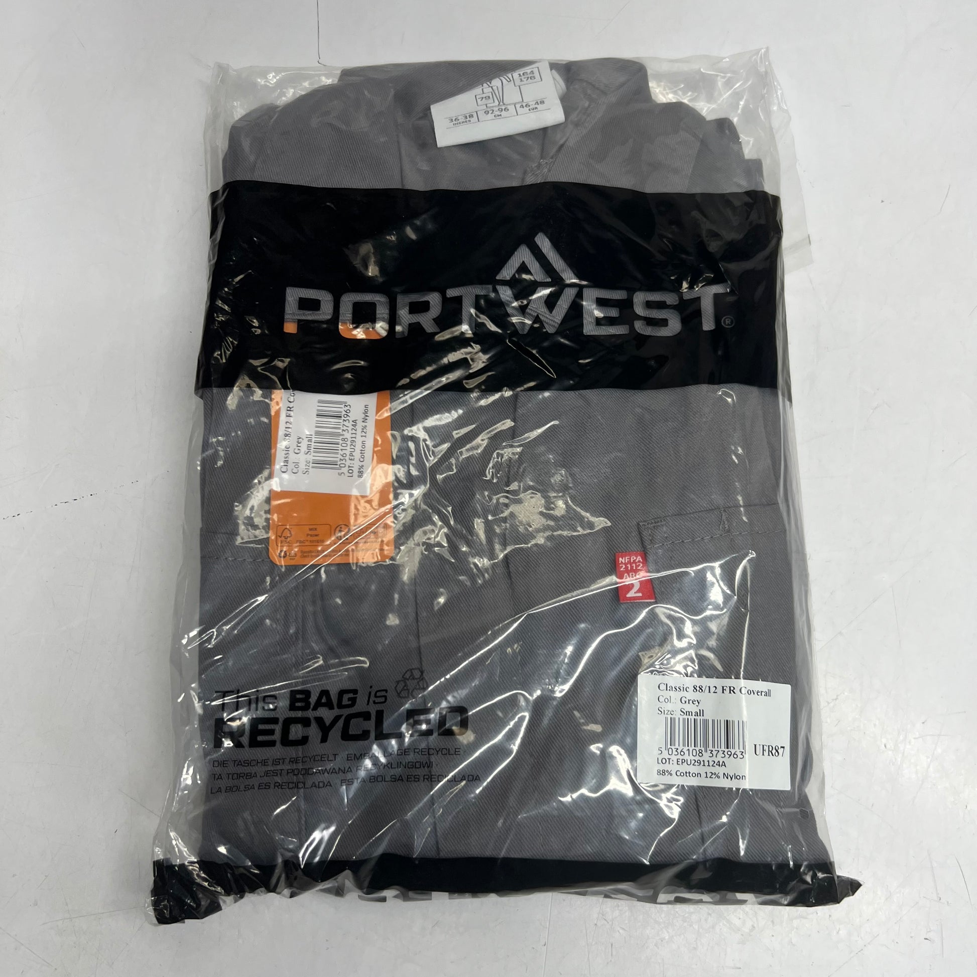 PORTWEST Bizflame 88/12 Classic FR Coveralls Sz Small, Grey UFR87