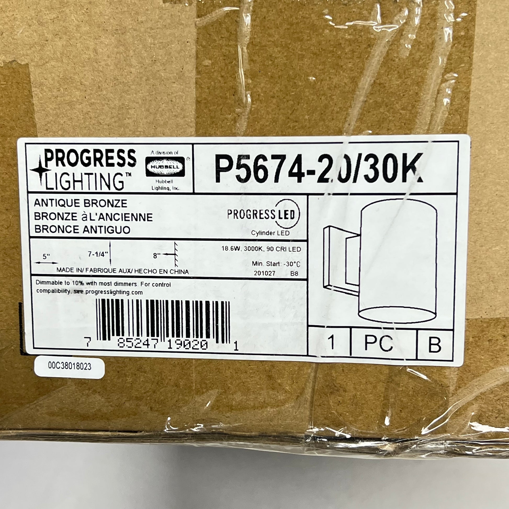 PROGRESS LIGHTING Cylinder Outdoor Light 7.25 Length Antique Bronze P567420/30K