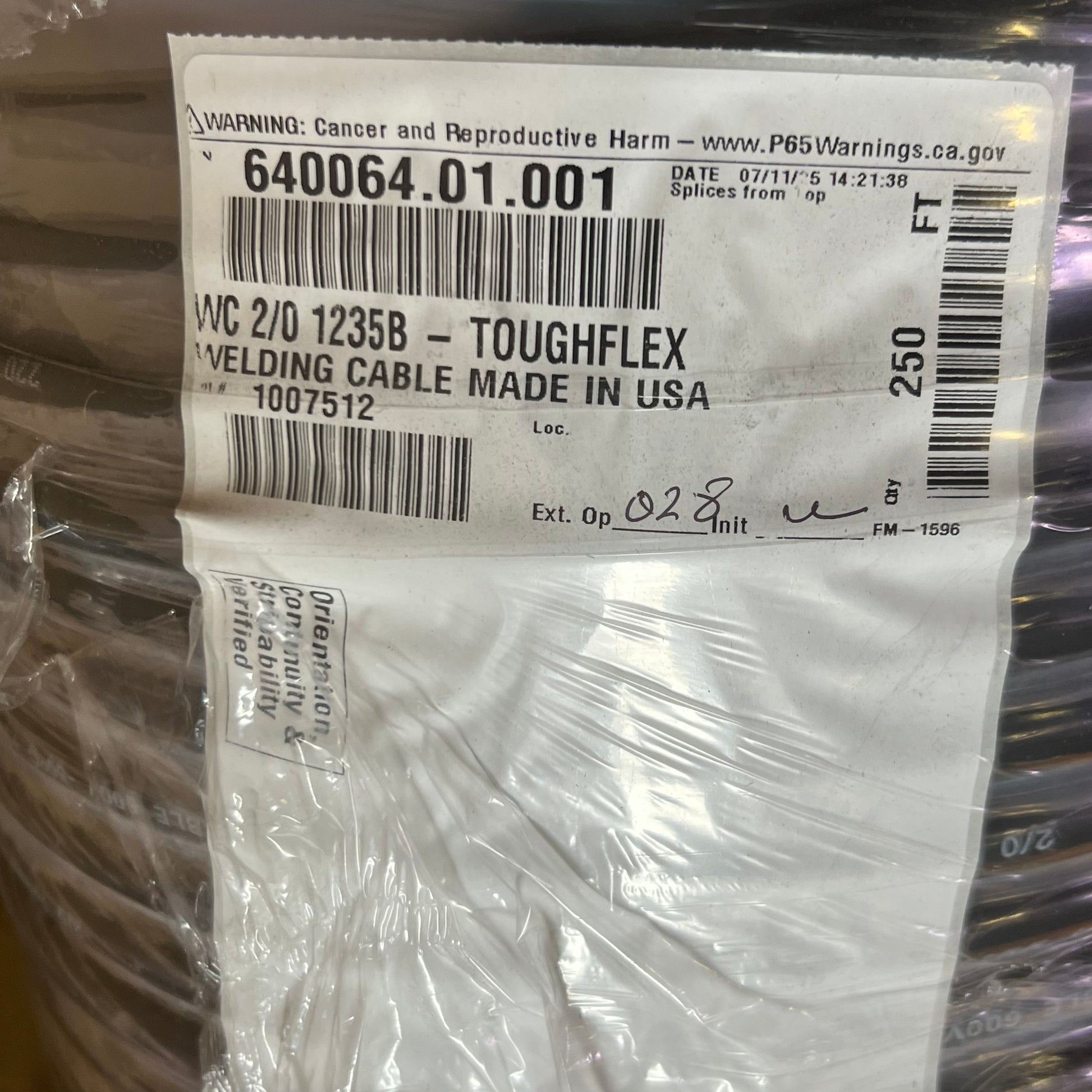 Reel Heavy Duty Welding Cable 2/0 AWG