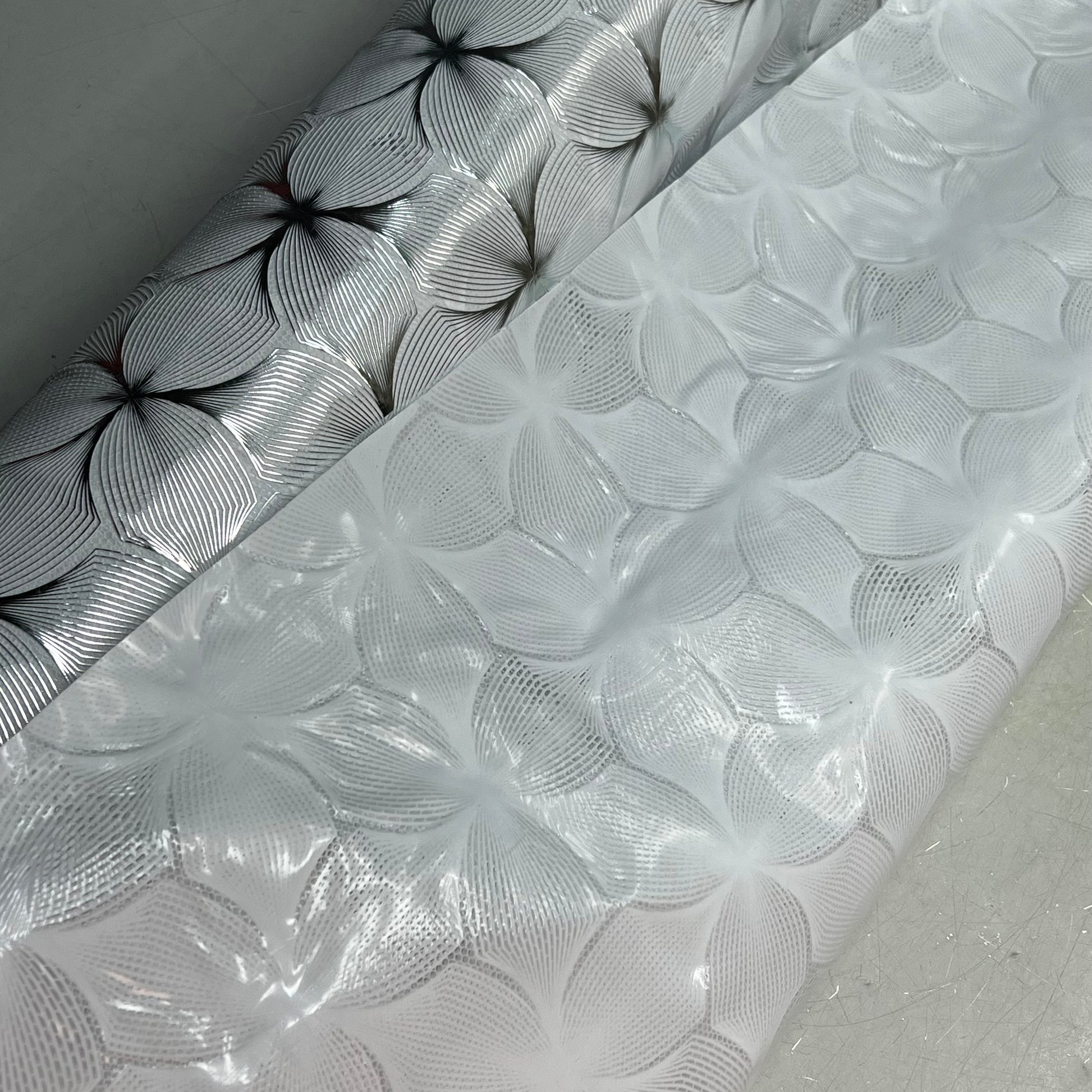 PVC Lace Dining Tablecloth Floral Pattern 54"x60' White/Silver