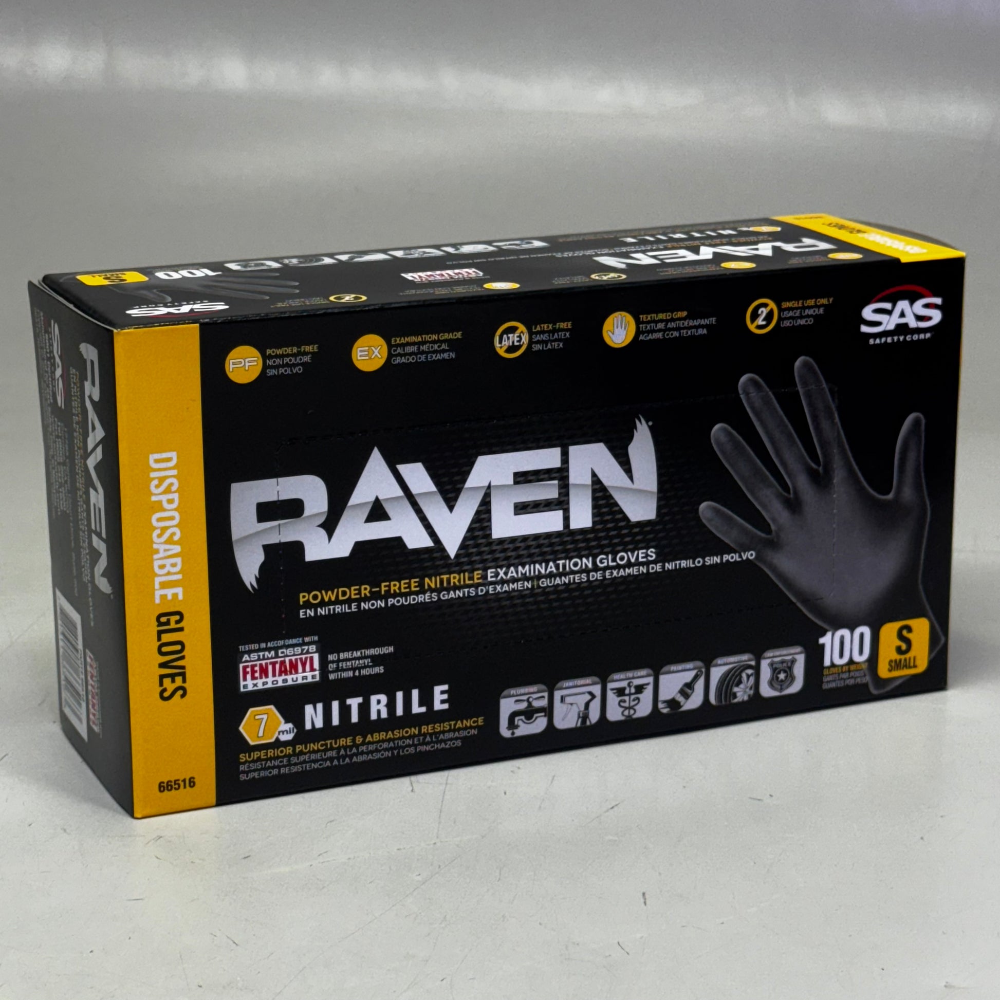 RAVEN (200 Gloves) Powder Free Nitrile Examination Gloves S Black 66516