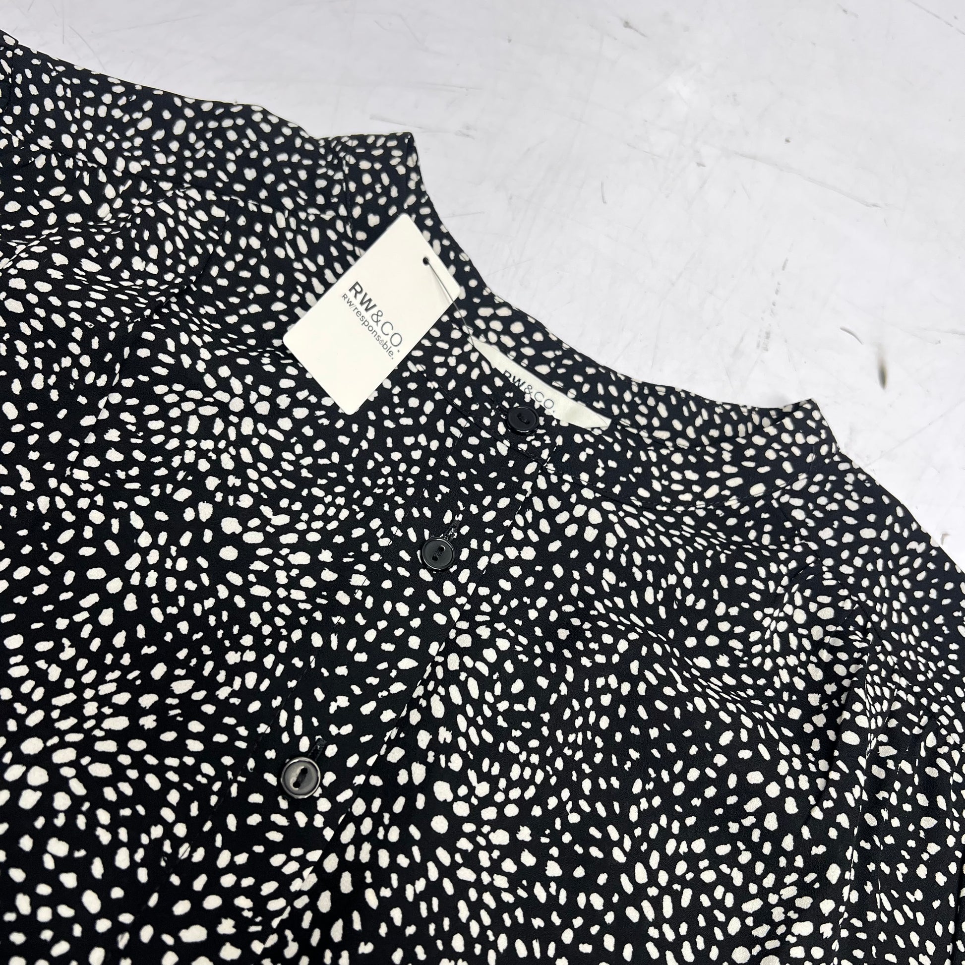 RW & CO Silky Long Sleeve Buttoned Down Blouse Women's Sz XL Black/White 495720