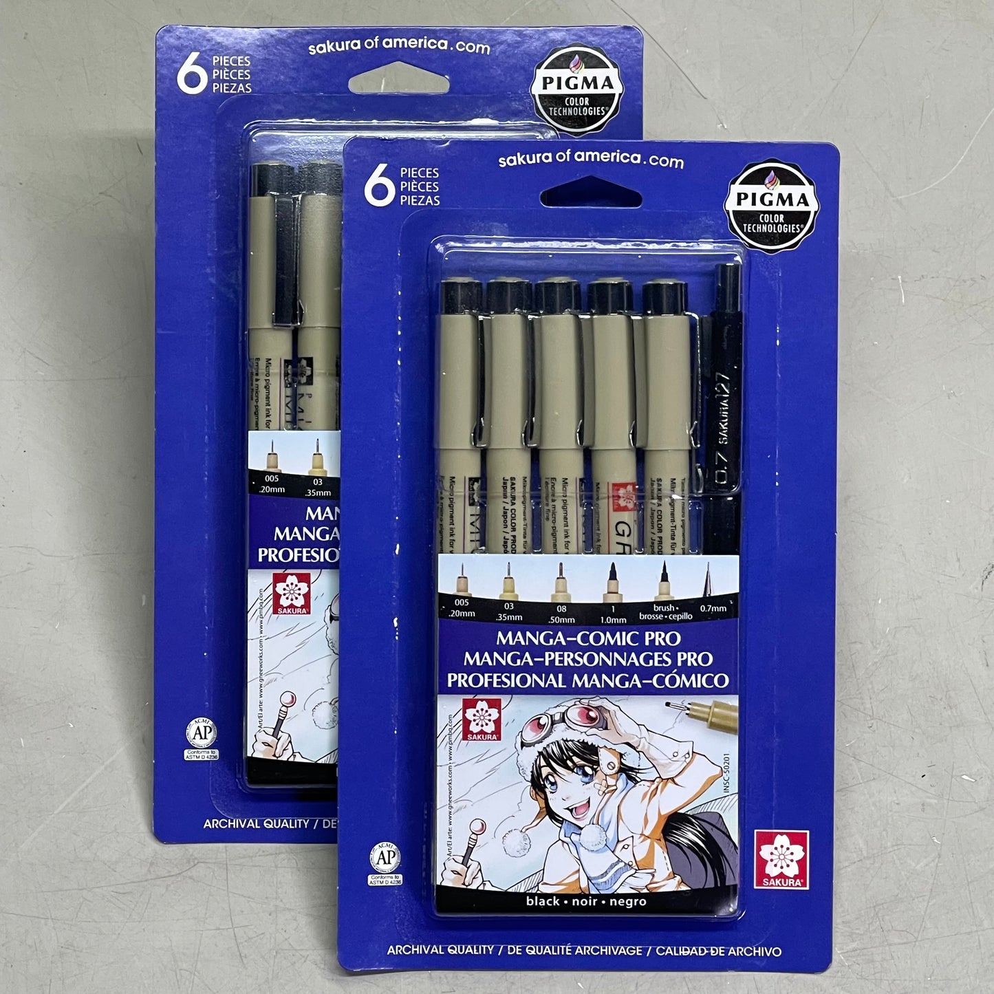 SAKURA (2-PACK) Pigma Micron Manga-Comic Pro Pens .20mm, .35mm, .5mm, 1mm Black 50201