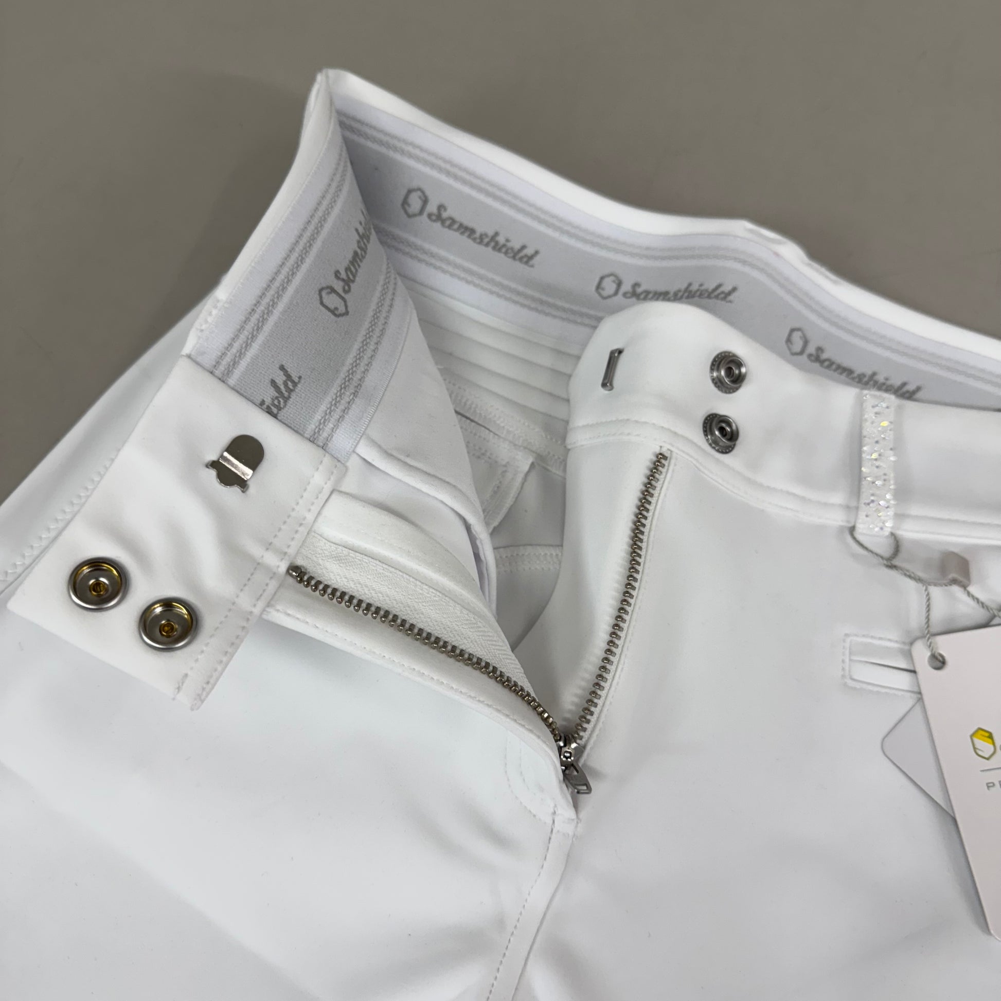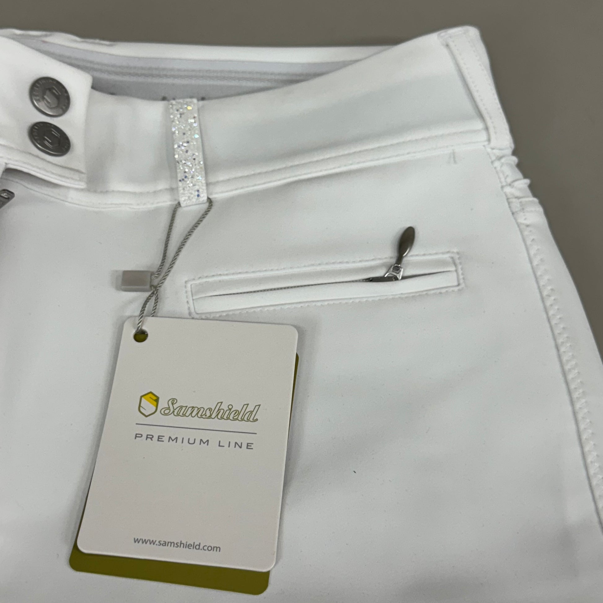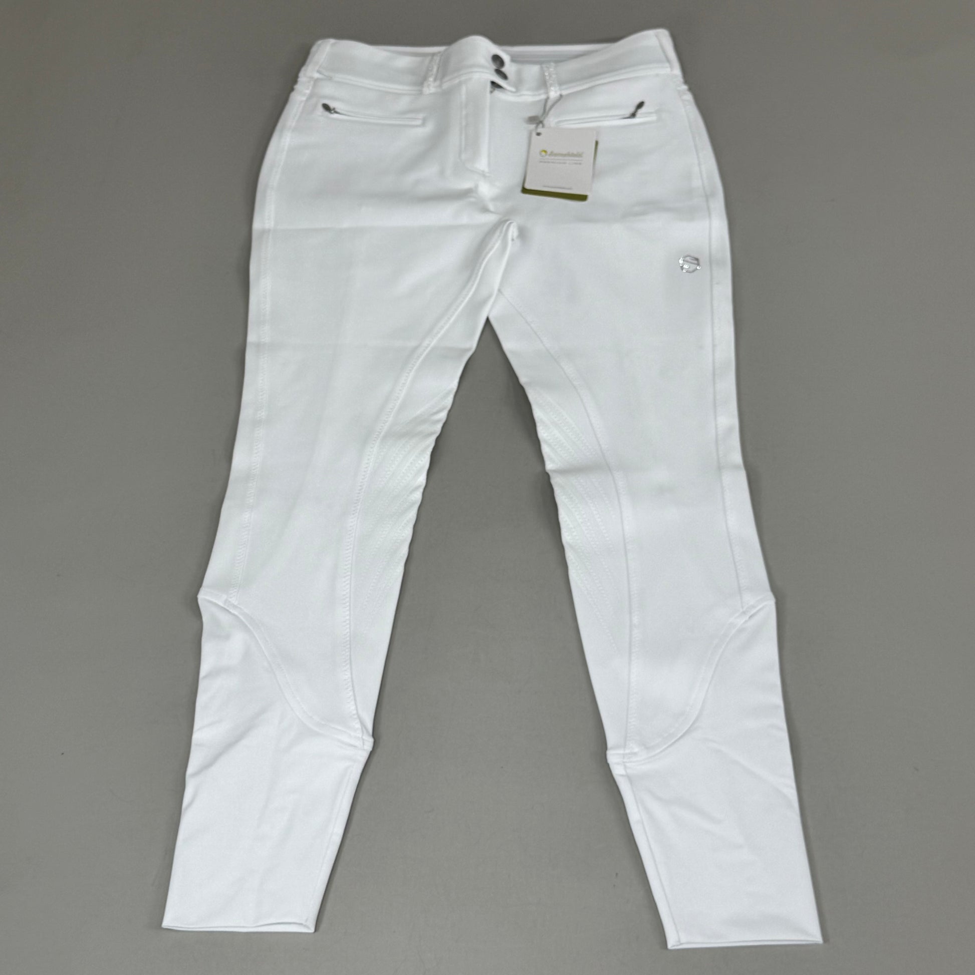SAMSHIELD Clara Premium Knee Grip Equestrian Pants Women's Sz US 26 White Blazon