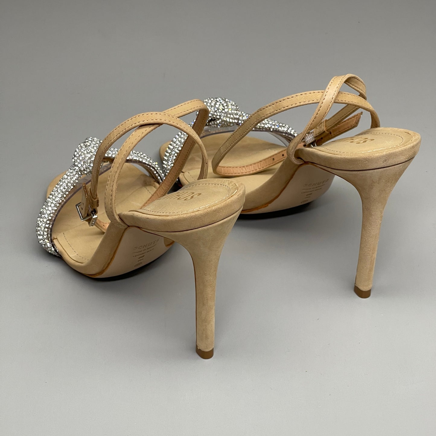 SCHUTZ Peaky Nubuck & Vinyl Multimaterial Women's Sandal Heel Light Nude Sz 10B (New)