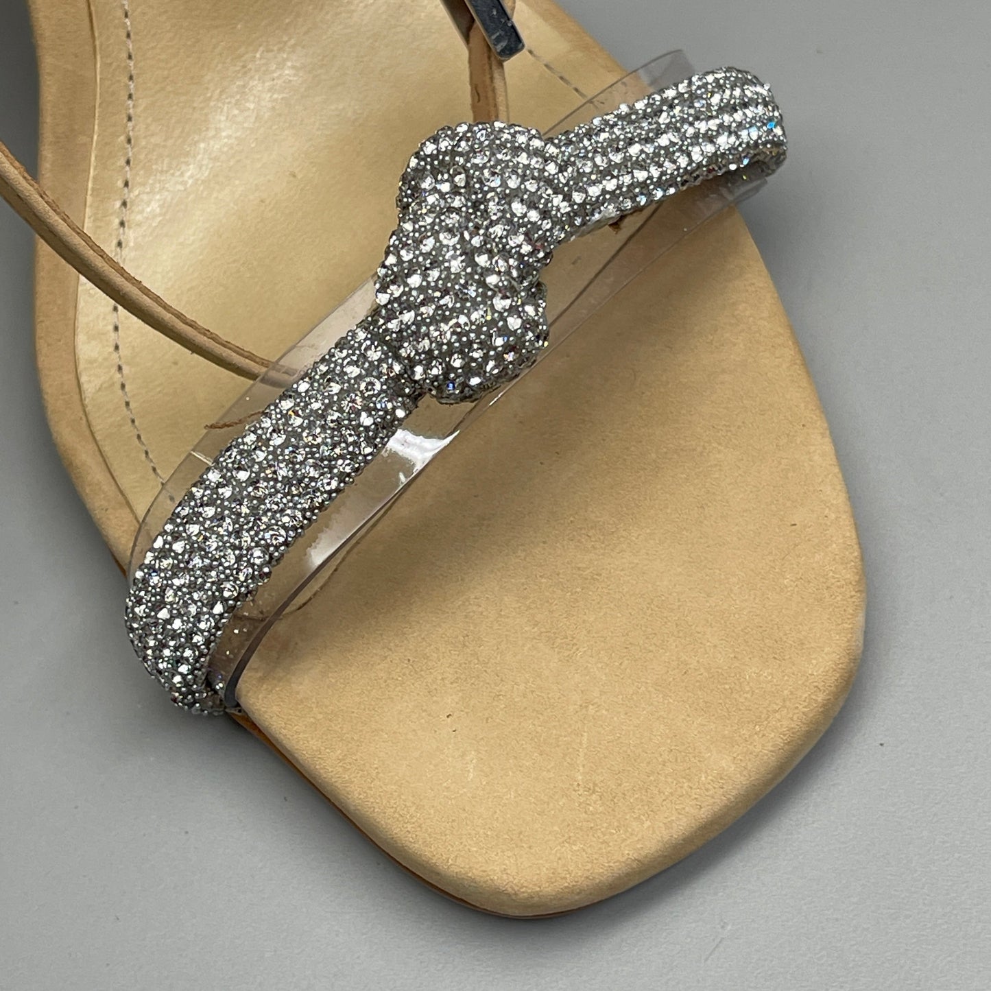 SCHUTZ Peaky Nubuck & Vinyl Multimaterial Women's Sandal Heel Light Nude Sz 9B (New)