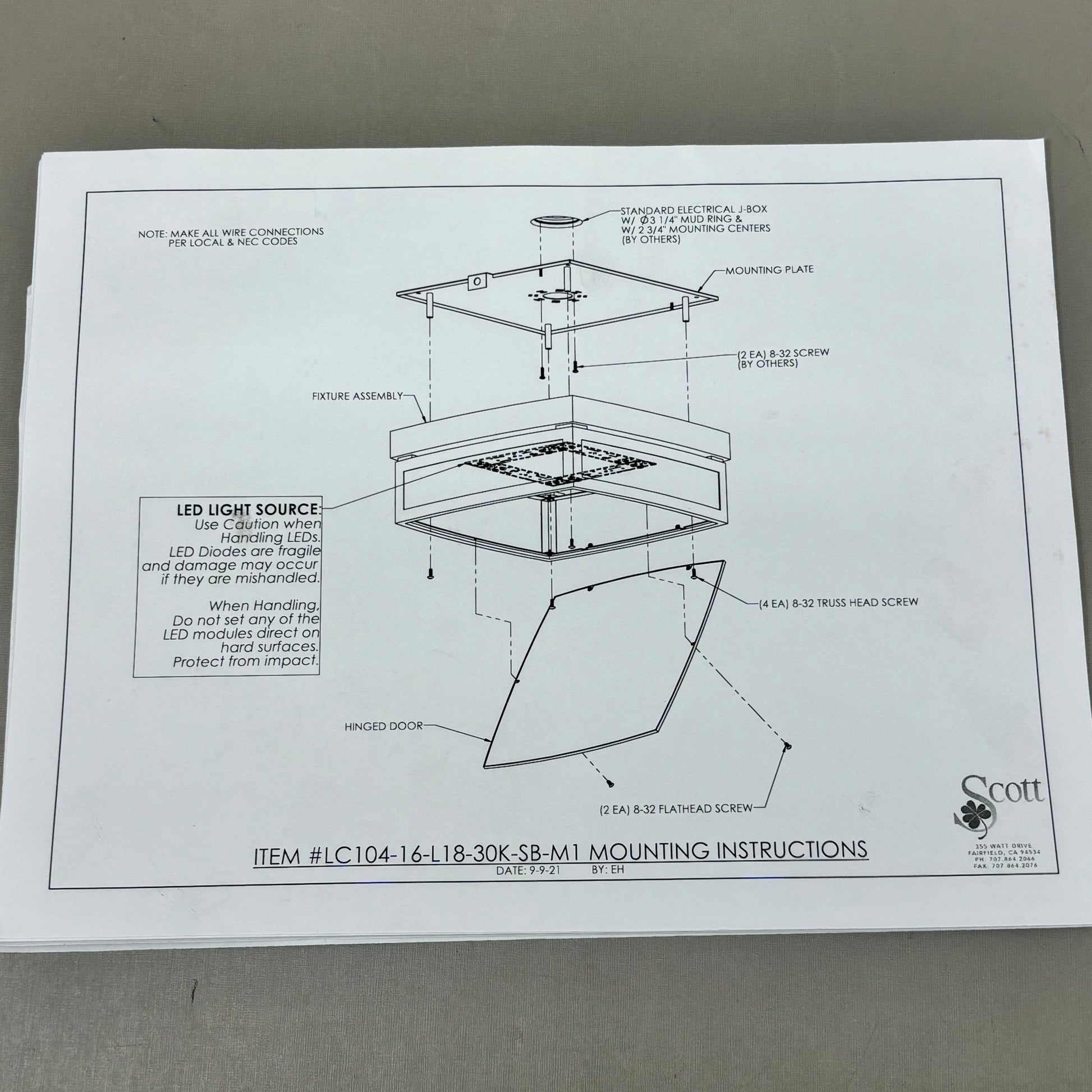 Mounting: Mounts to all Standard Electrical Junction Boxes (by others) With Hardware Provided.