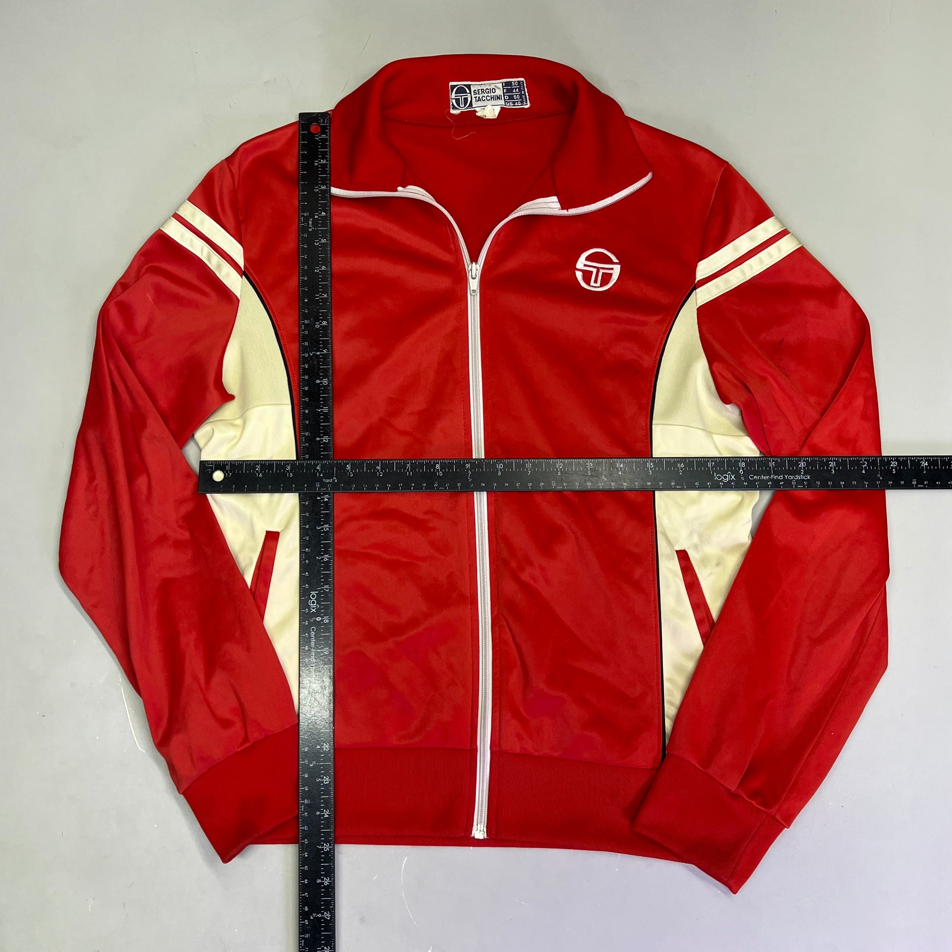 SERGIO TACCHINI Sportswear Track Suit Zip Up Jacket US Sz 40 Red/Cream (Used)