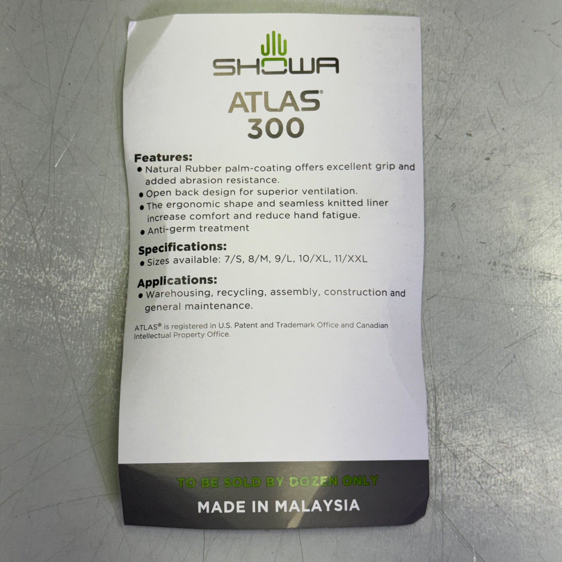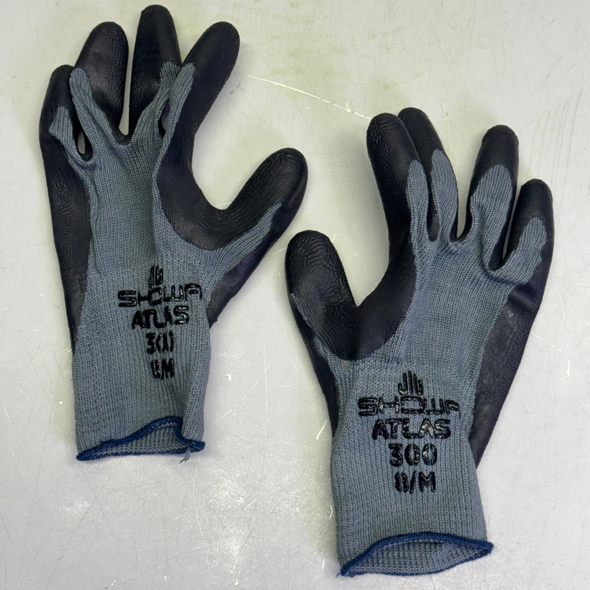SHOWA ATLAS 300 (12 PAIR) Palm-Dipped Rubber Coating Work Gloves Sz 8/M, Black
