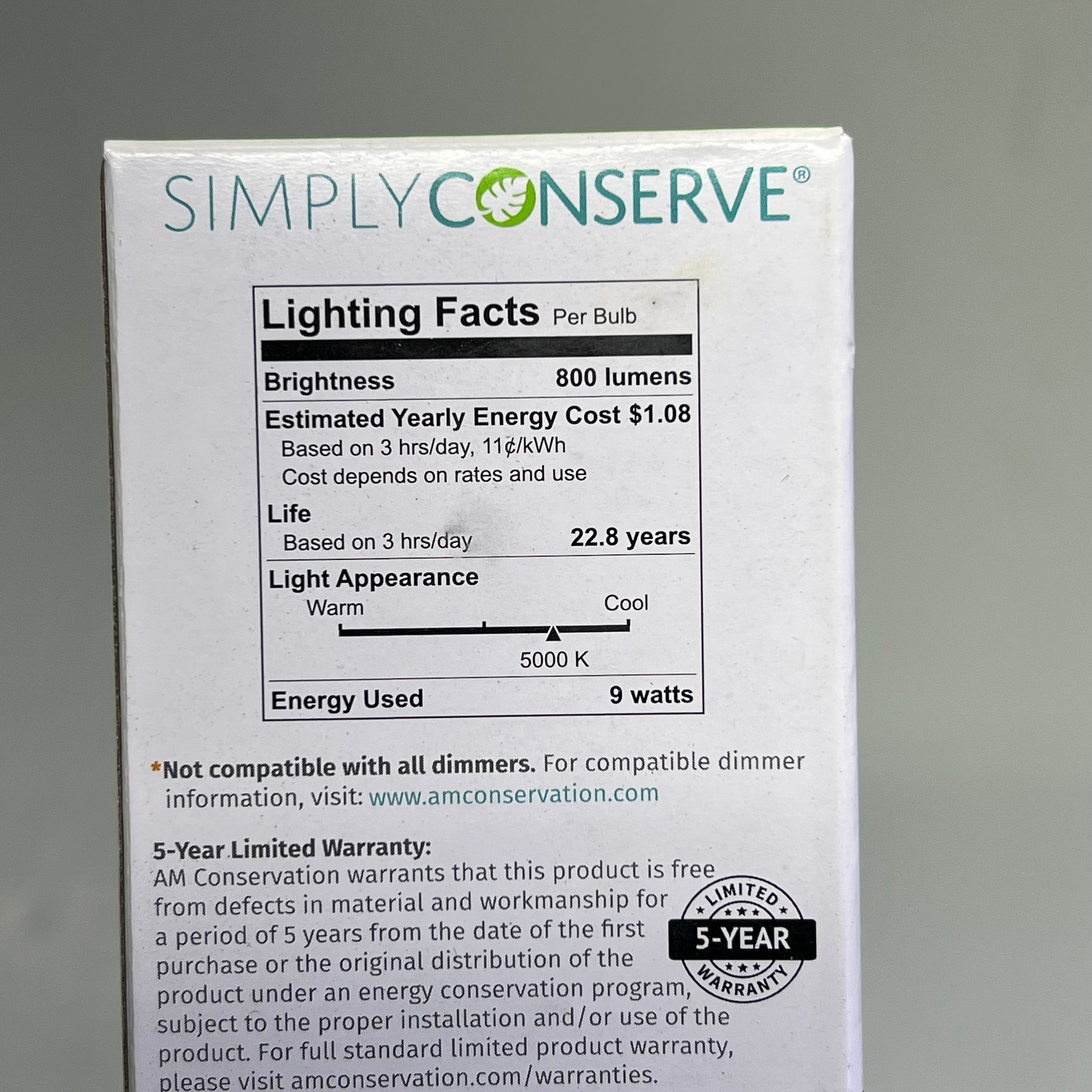 SIMPLY CONSERVE (3 PACK) LED Light Bulb 800 Lumens Daylight L09A1950KENCL