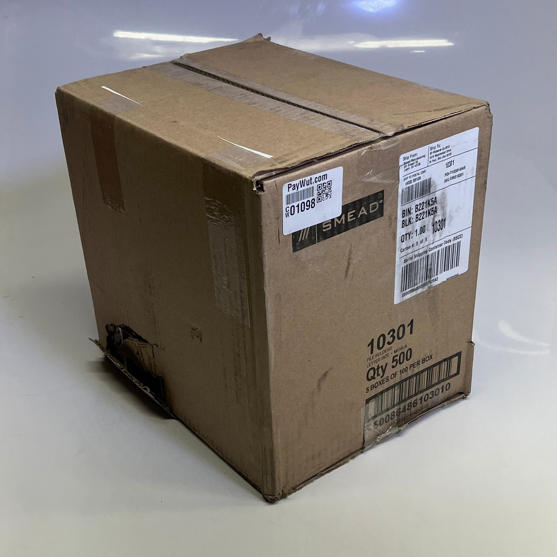 ZA@ SMEAD (500 PACK) Super Tab File Folders 1/3 Cut Letter Sz Manila 10301 (Damaged)