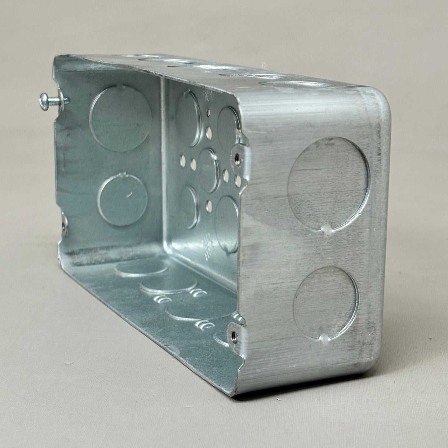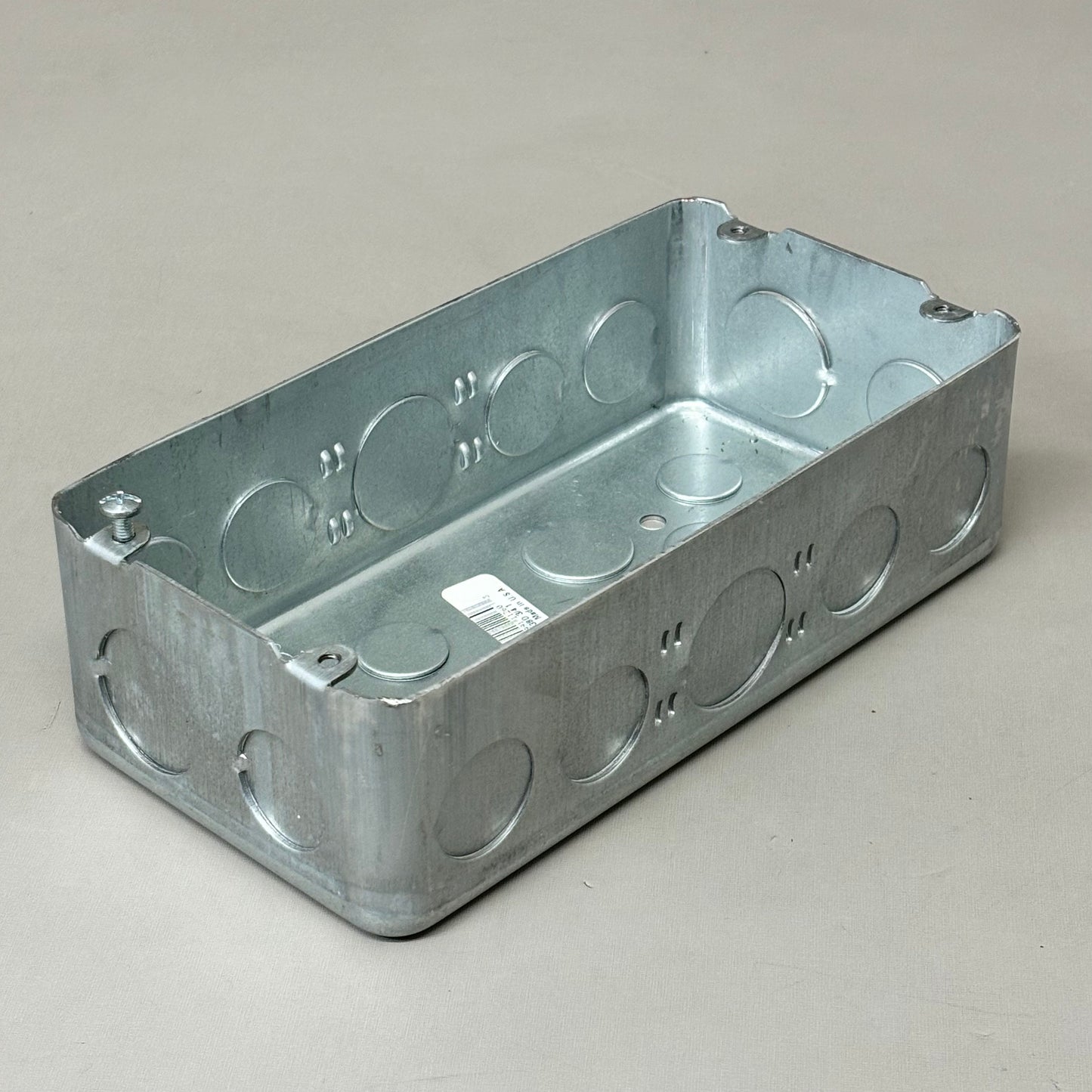 Description: Three Gang Drawn-Style Gang Box, 90 Cubic Inches, 8-5/8 Inches Long X 4-1/2 Inches Tall X 2-1/2 Inches Deep, 3/4 Inch and 1 Inch Knockouts, Pre-Galvanized Steel, Drawn Construction, For Use With Conduit
