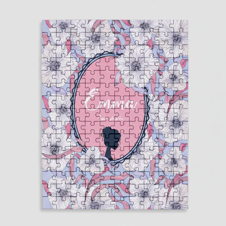 Fall in love with this classic story all over again piece by piece. This charming 150-piece mini puzzle is a perfect nod to your favorite classic story, beautifully designed to resemble the cover of Jane Austen's novel Emma once complete. The puzzle comes nestled inside a keepsake storage box styled like a hardcover book, making it as delightful to display on your shelf as it is to assemble. Whether you're a seasoned puzzler or a devoted book lover, this elegant little puzzle is a thoughtful way to unwind, celebrate a favorite story, or gift a fellow reader.