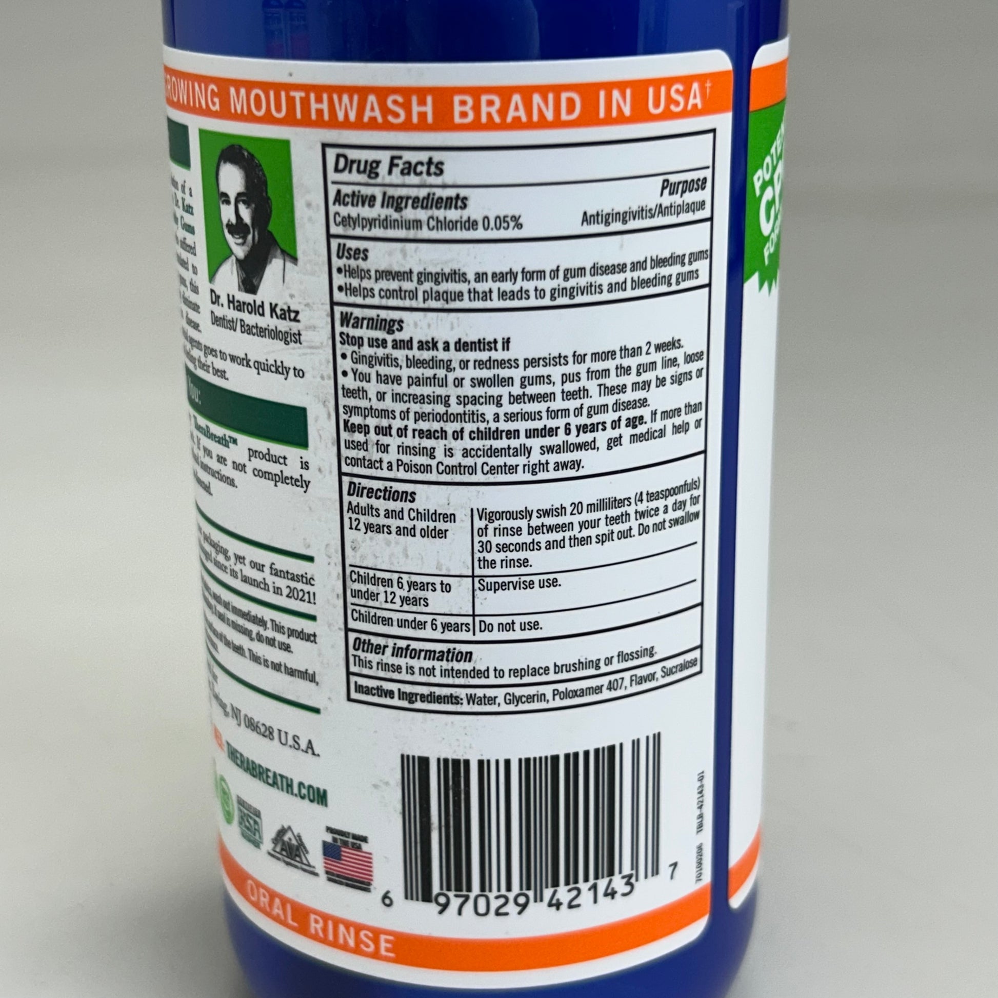 Active Ingredients: Cetylypridinium Chloride 0.05%