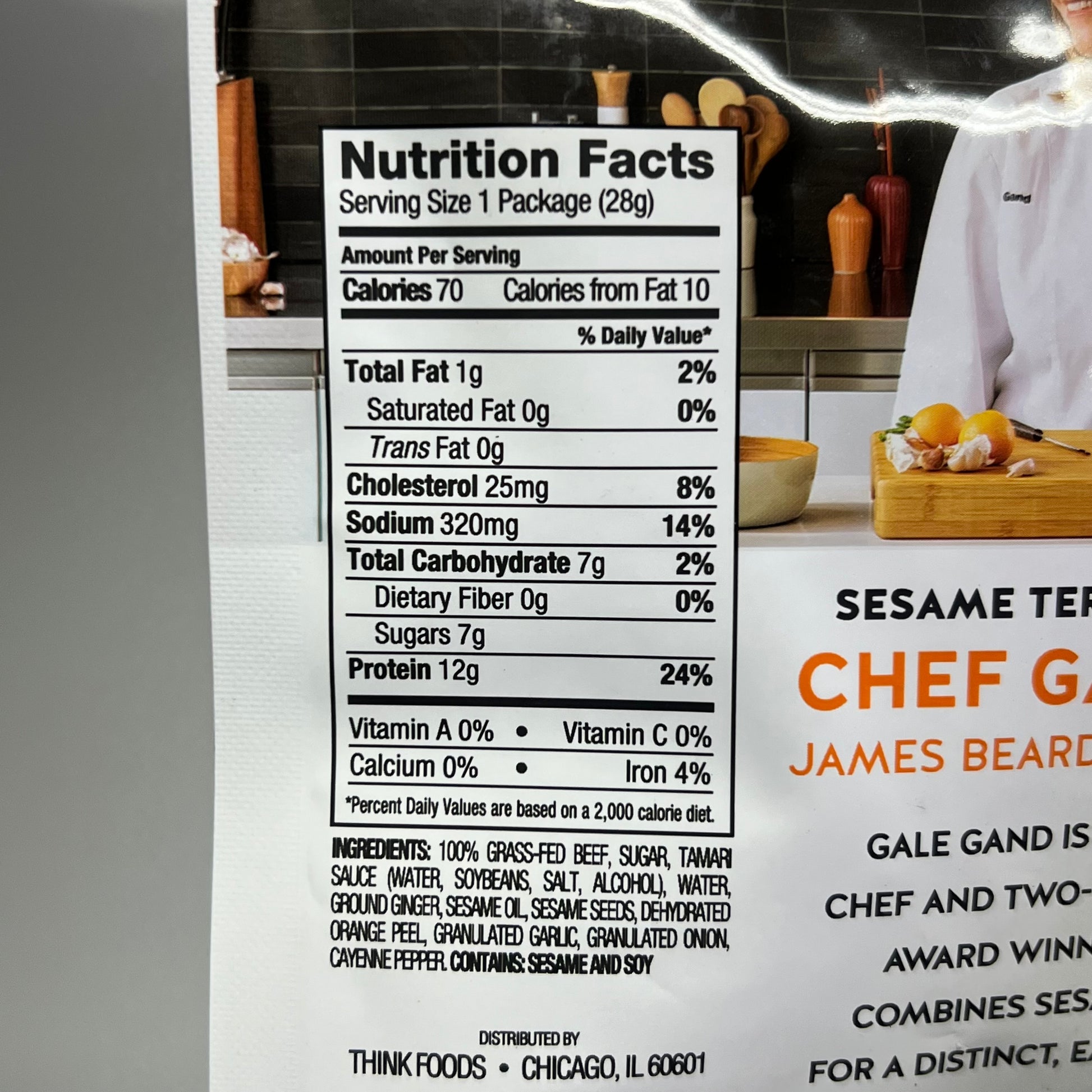 Ingredients: 100% Grass-Fed Beef, Tamari Sauce, Cane Sugar, Sesame Oil, Ginger, Sesame Seeds, Granulated Garlic, Orange Peel, Granulated Onion, Cayenne Pepper