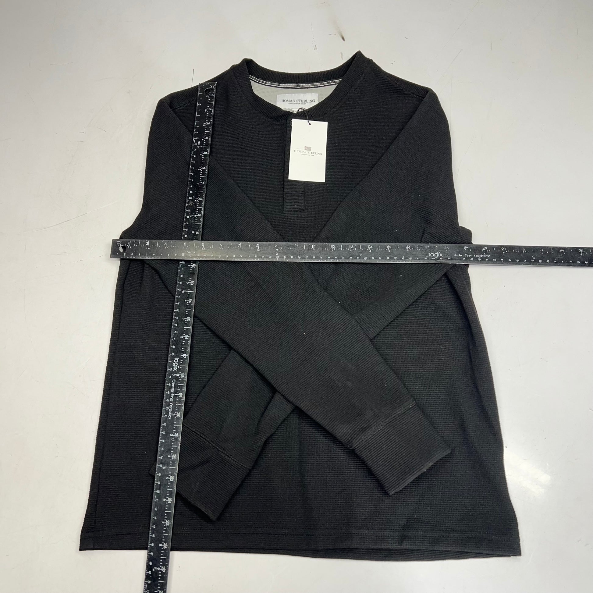 THOMAS STERLING Half Button Soft Waffle Knit Long Sleeve Men's Sz S Black