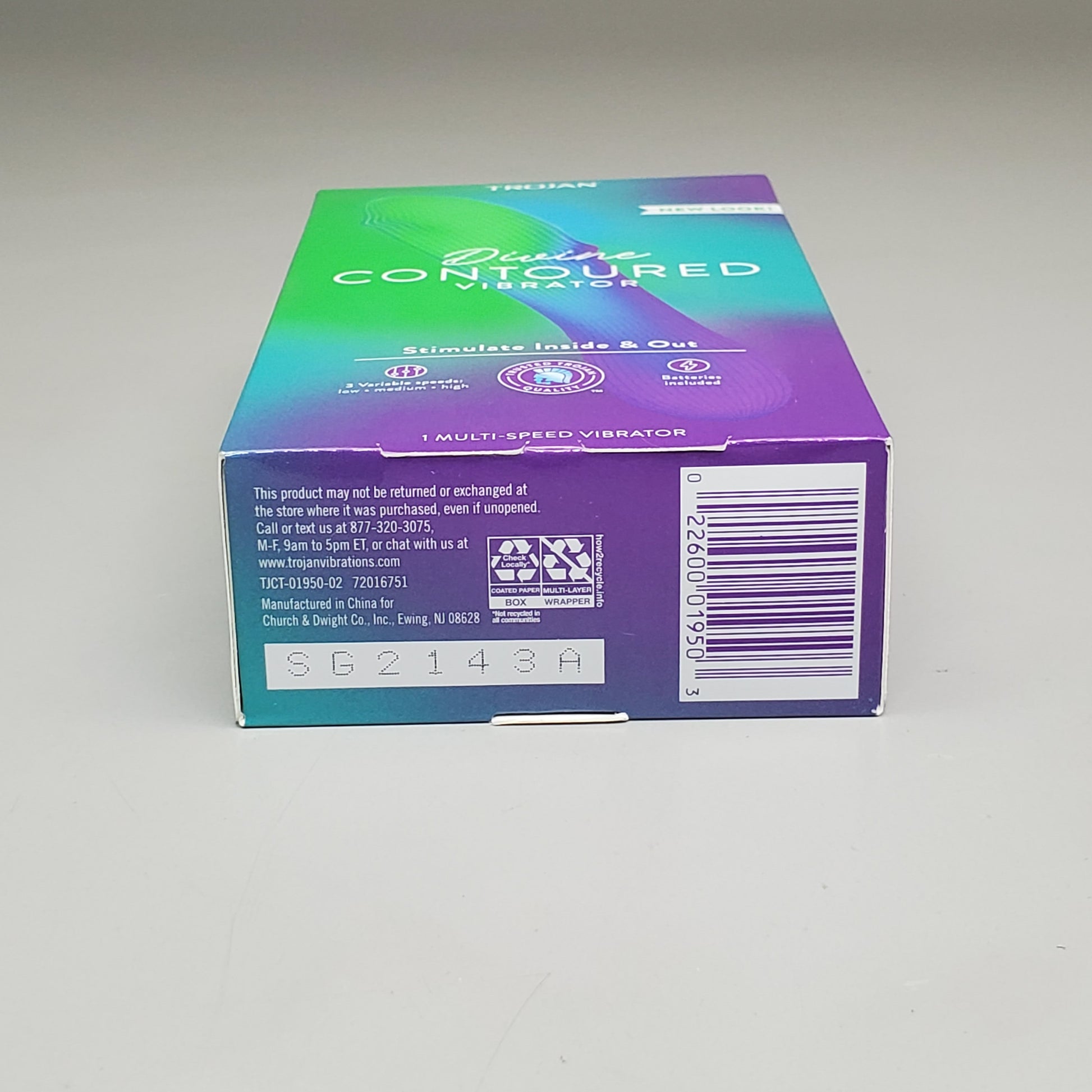 TROJAN Divine Contoured Vibrator Personal Massager Multi-Speed 3 Variable Speeds
