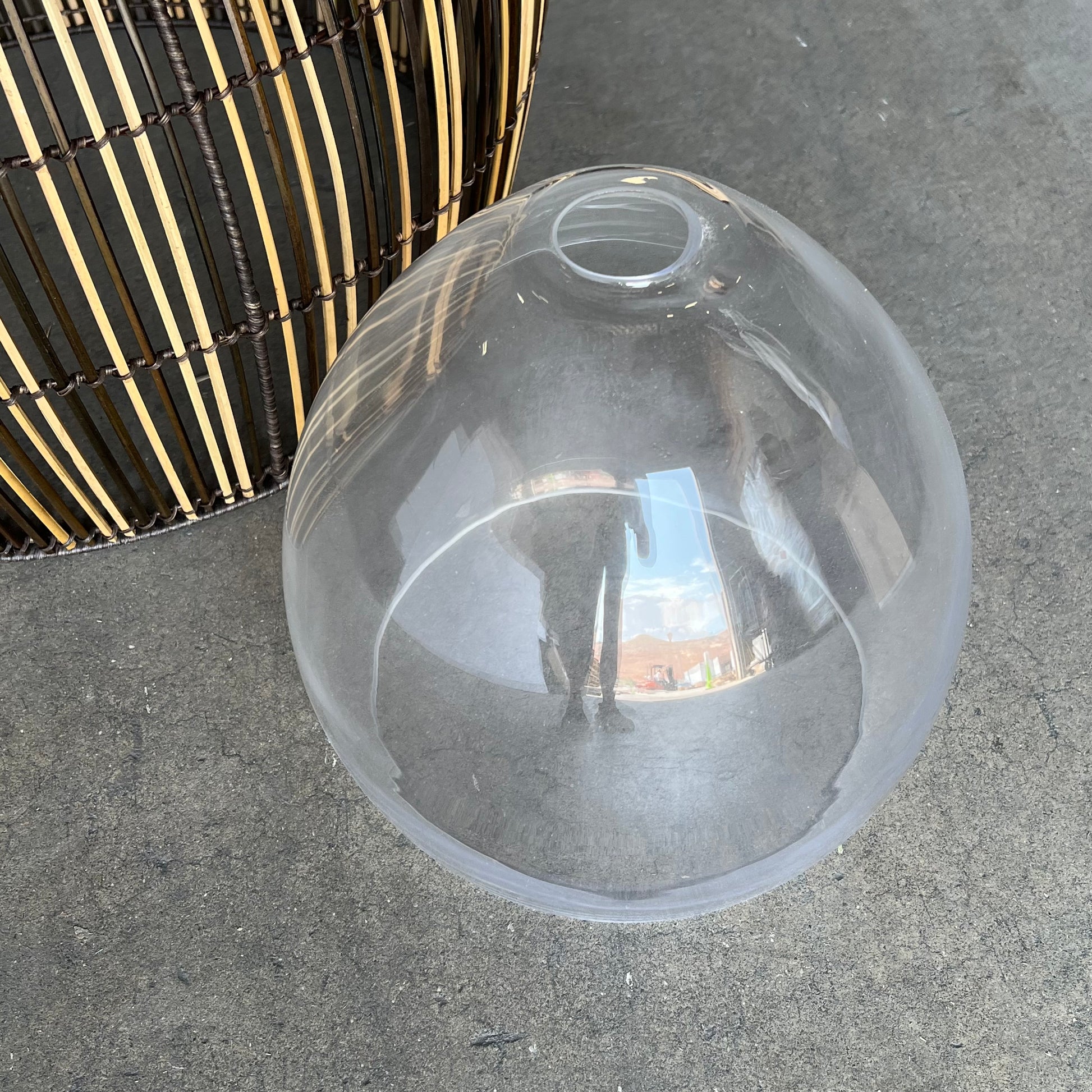 Description: An open and airy weave of faux reeds, designed specifically for outdoor use, form a beehive silhouette over a clear glass shade. The two-tone finish adds a natural, neutral hint of color. Bring a modern organic style to outdoor living spaces with this beautiful exterior lantern pendant.