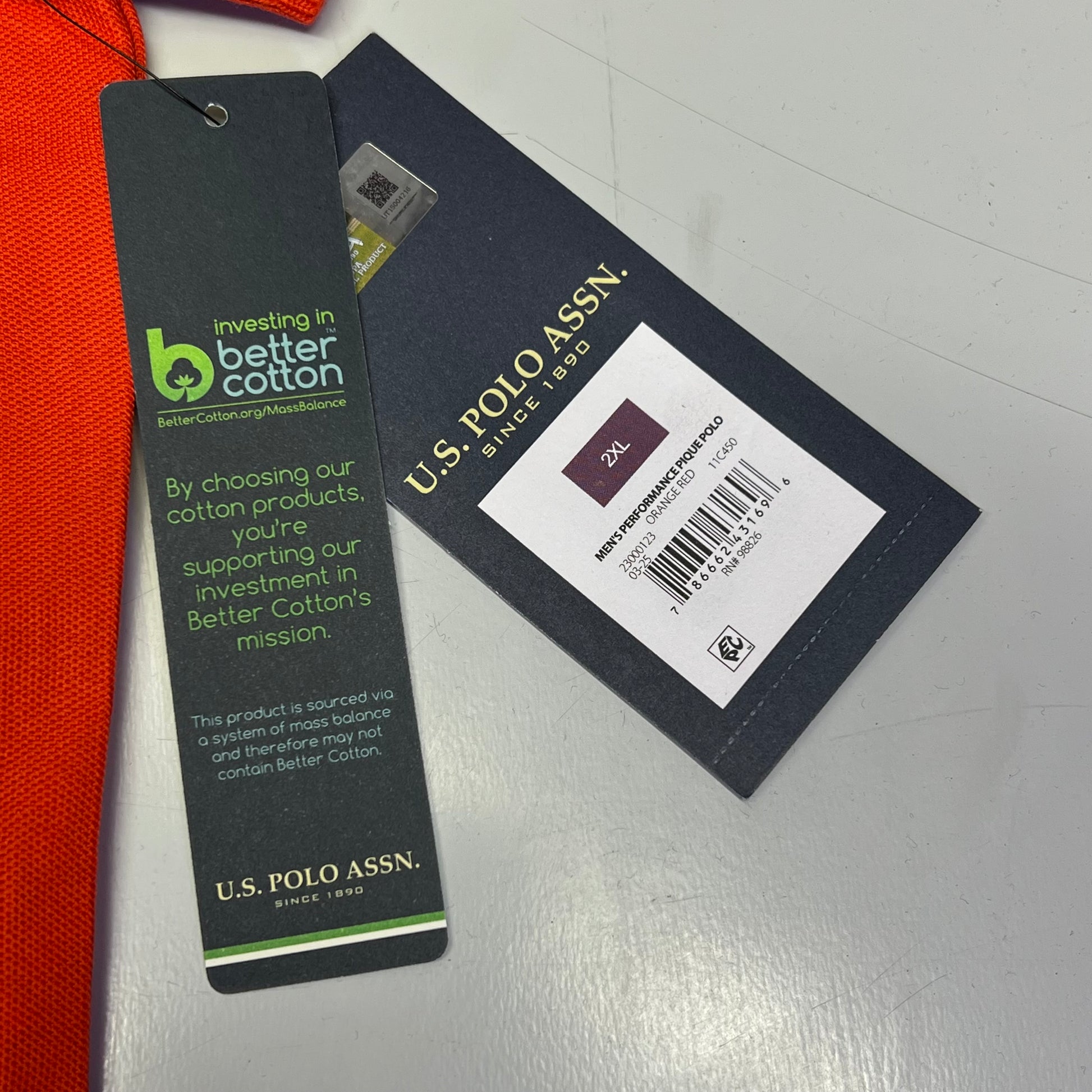 ZA@ U.S. POLO ASSN Performance Pique Polo Short Sleeve Shirt Men's Sz 2XL Orange Red