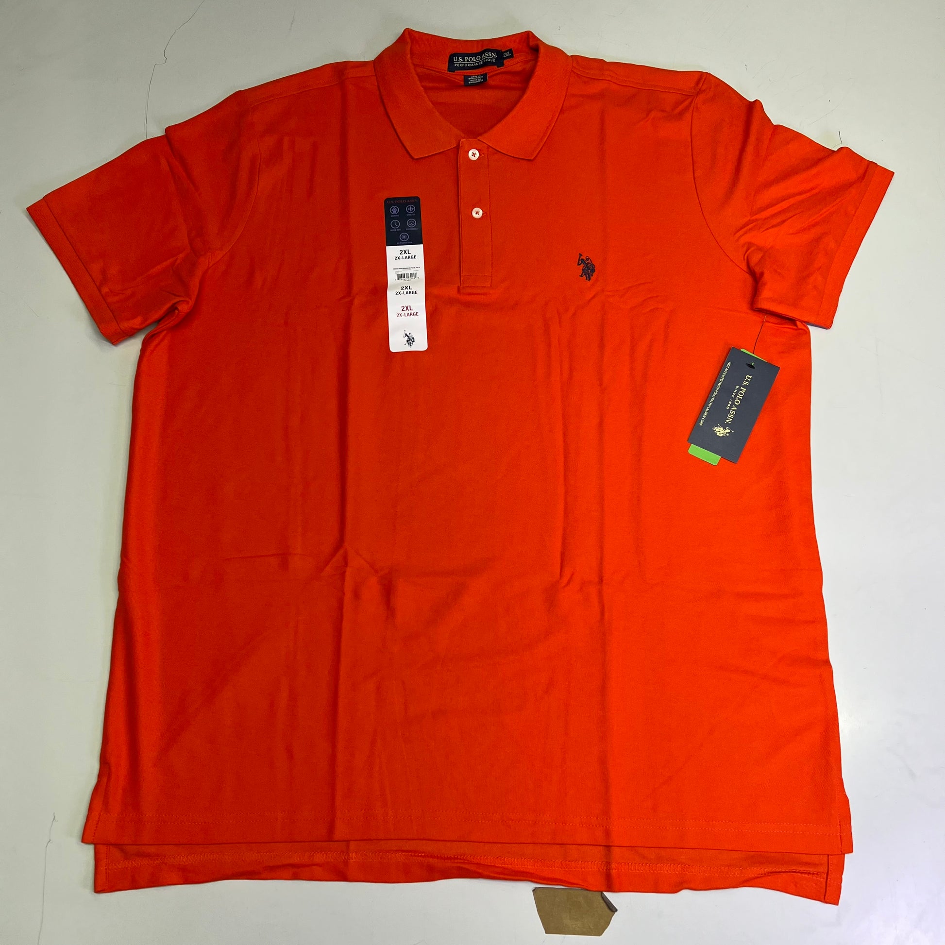 U.S. POLO ASSN Performance Pique Polo Short Sleeve Shirt Men's Sz 2XL Orange Red