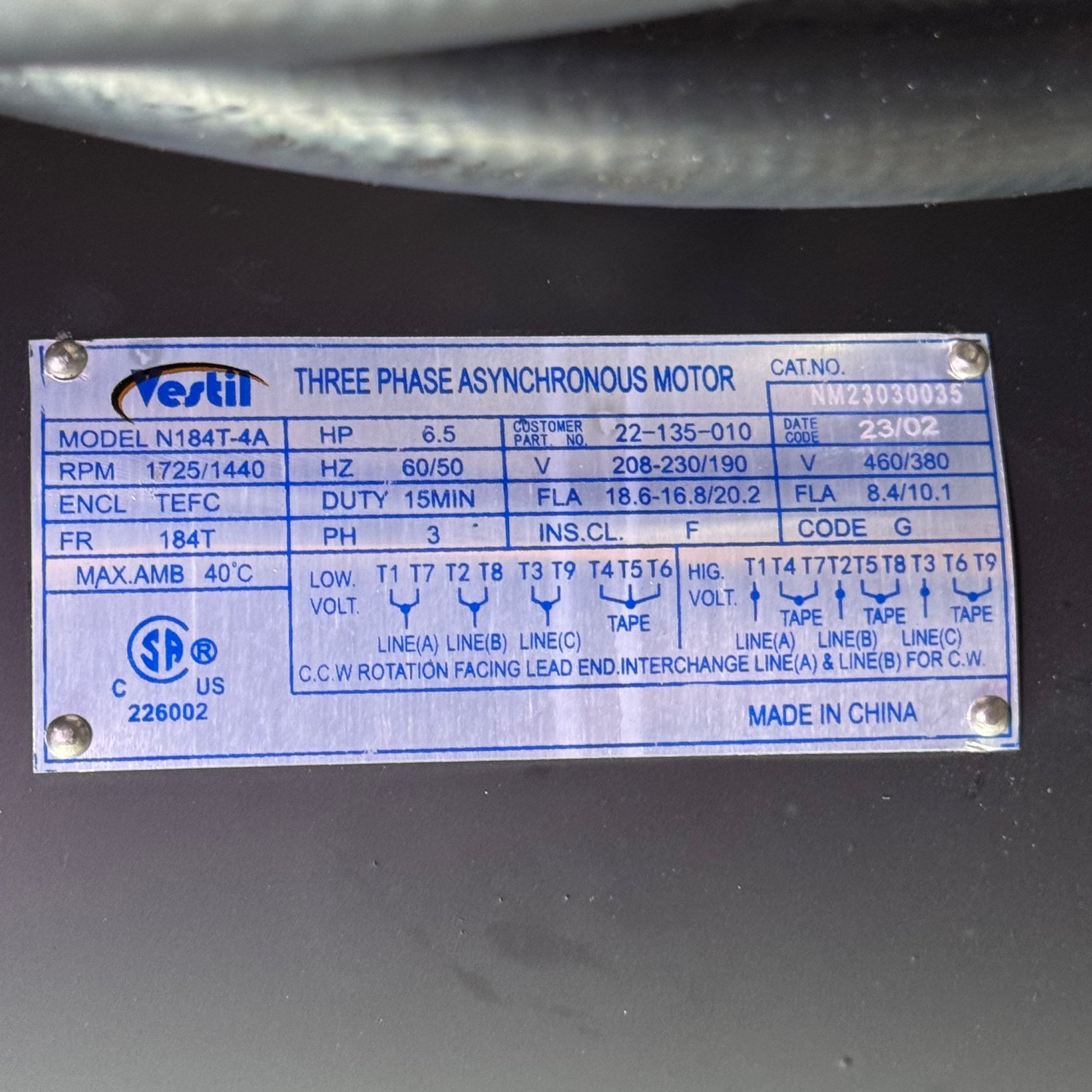 VESTIL Three Phase Asynchronous Motor For Loading Docks 6.5HP Capacity 6000 Lbs 208/230V