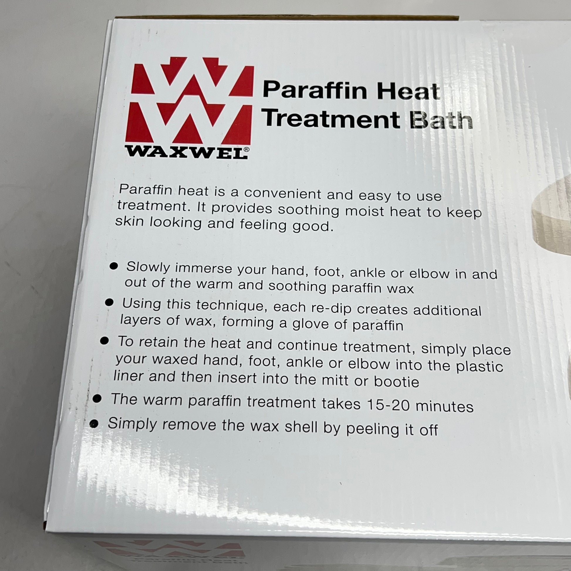 The Standard WaxWel unit is heavy duty and suited for continuous use in high-traffic clinics. The heating element of this unit heats the paraffin wax to approximately 125-134 degrees Fahrenheit. It will automatically shut off if the thermostat malfunctions. The illuminating light indicates if the unit is on and operating