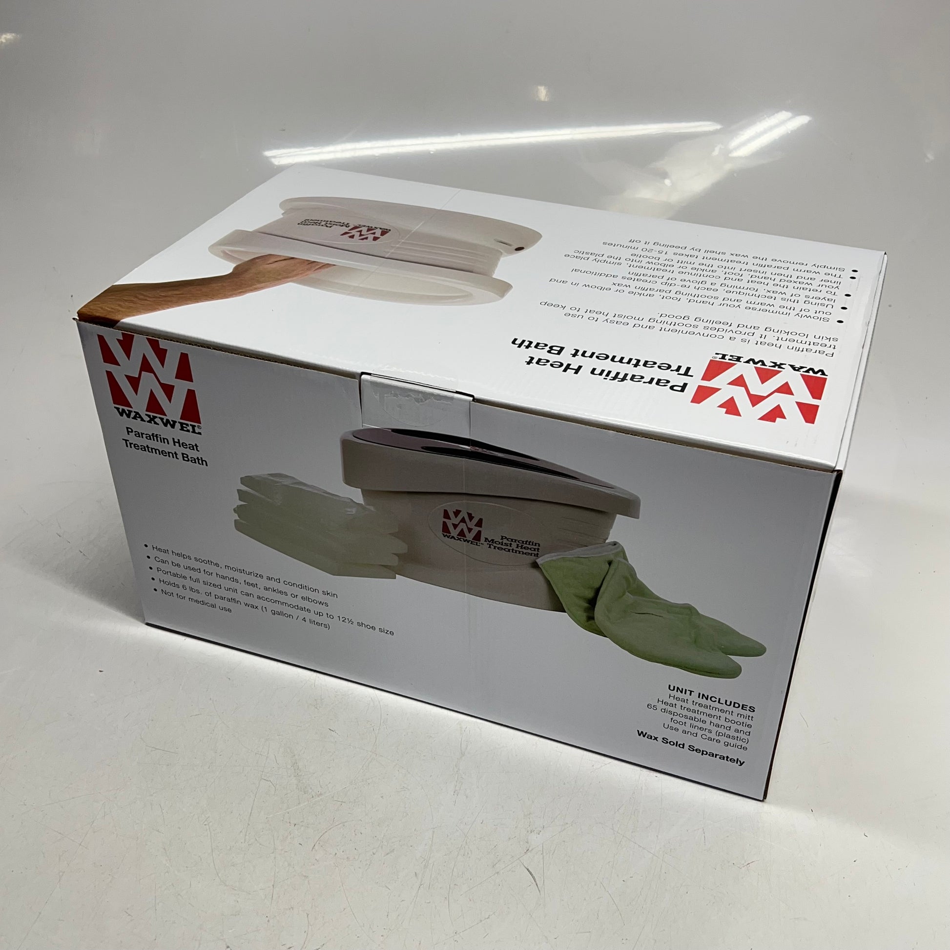 Ideal for skin treatments, the paraffin wax (6 lbs. included) can be used to soothe and condition hands, feet, and elbows. The oversized tank can accommodate the largest man's foot. To retain heat, the set also includes a terry cloth mitt and bootie and 65 disposable glove liners to place the treated hand or foot in for continued heat therapy.
