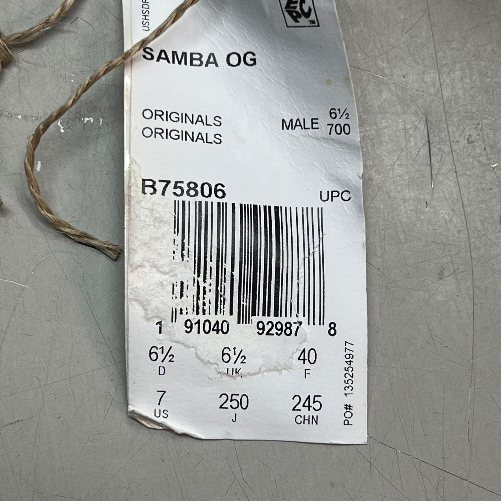 ZA@ ADIDAS Samba OG Sneaker Regular Fit Men's Sz 7 Black/White/Grey B75806 (As-is)
