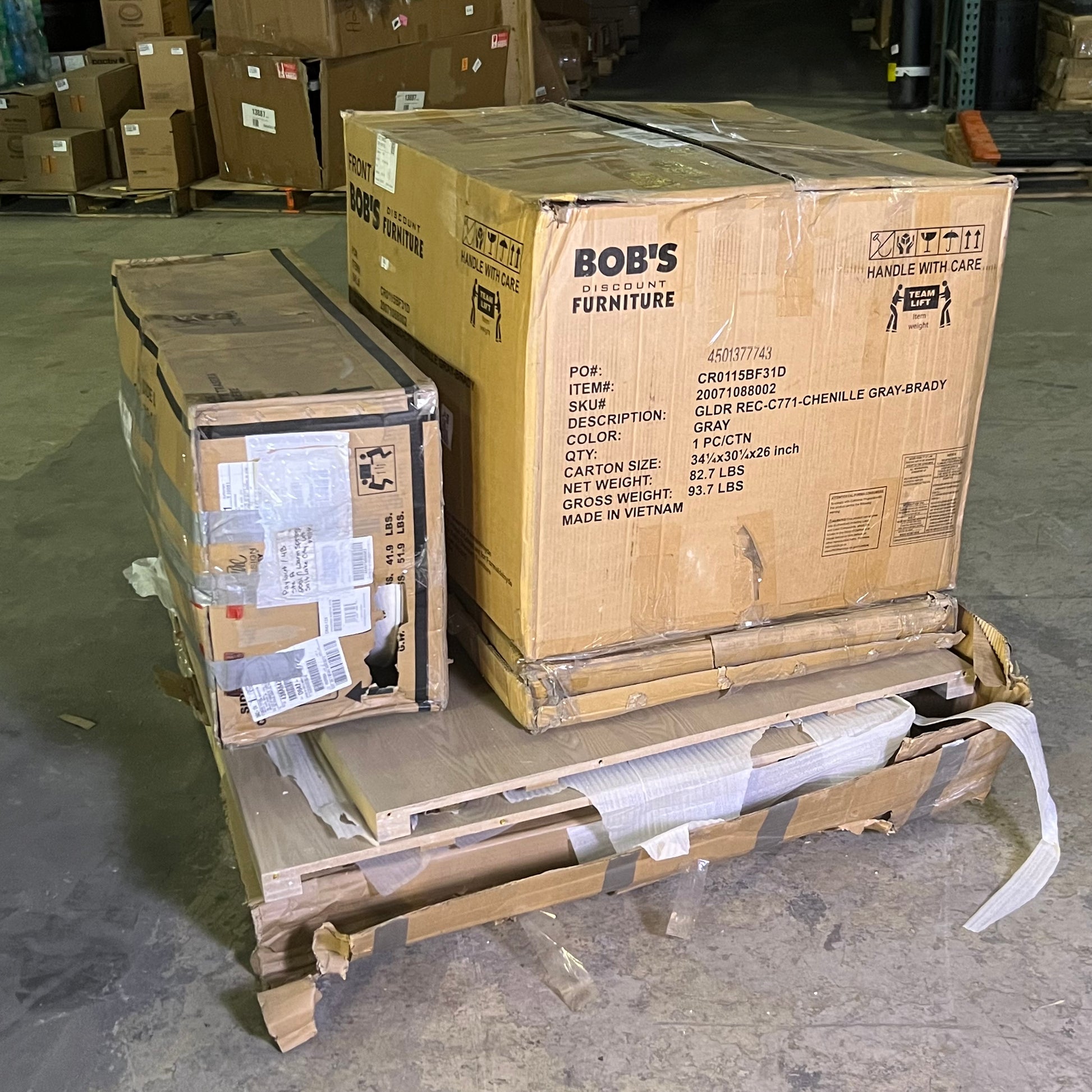 Pallet of BOB'S Kitchen Table & Chairs 20071088002, Gray (AS-IS, Some Are Damage)