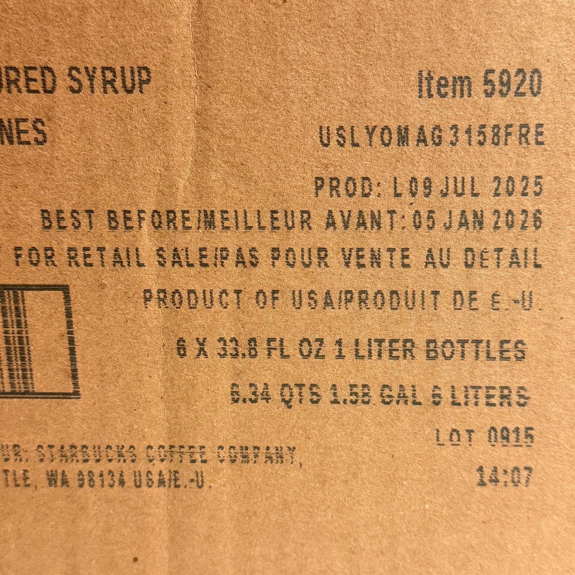 STARBUCKS (6 PACK) Fontana Pecan Flavoured Syrup 33.8 fl oz/bottle BB 01/26