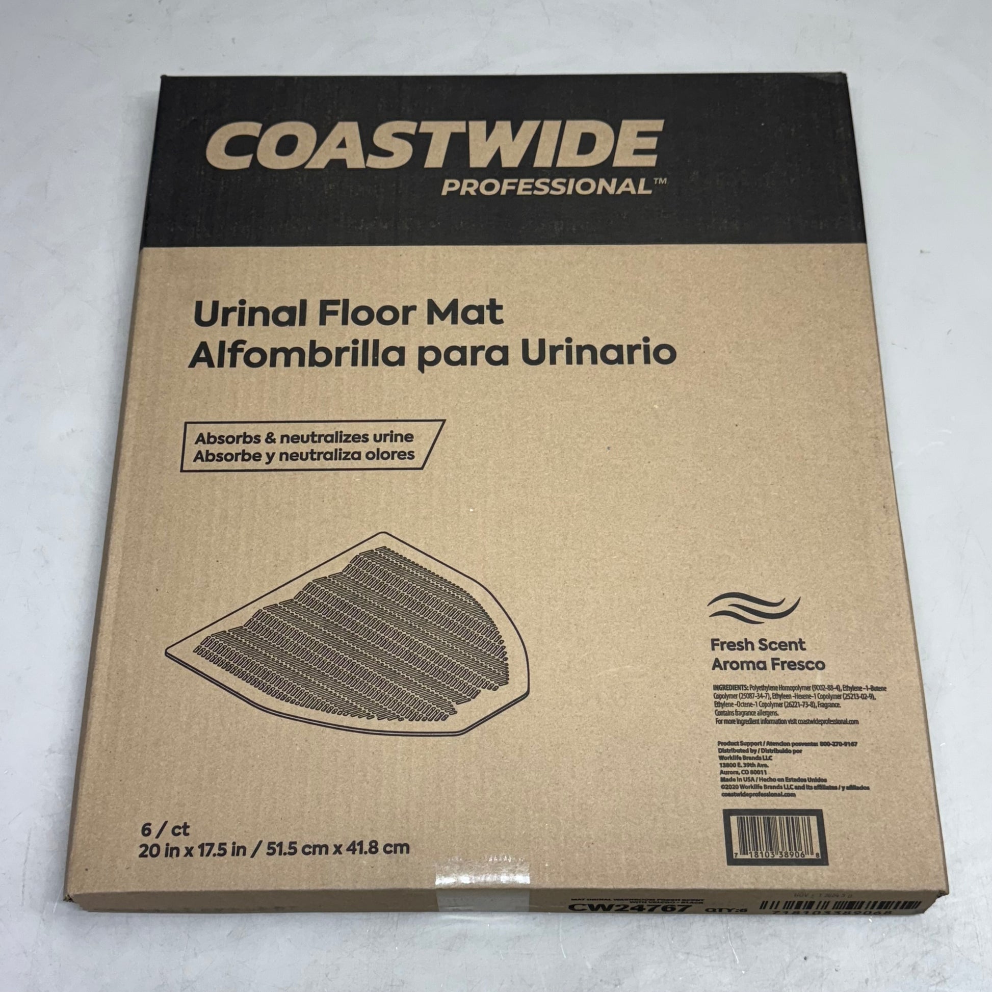 COASTWIDE PROFESSIONAL (6 Pcs) Urinal Floor Mat 20" x 17.5" Black