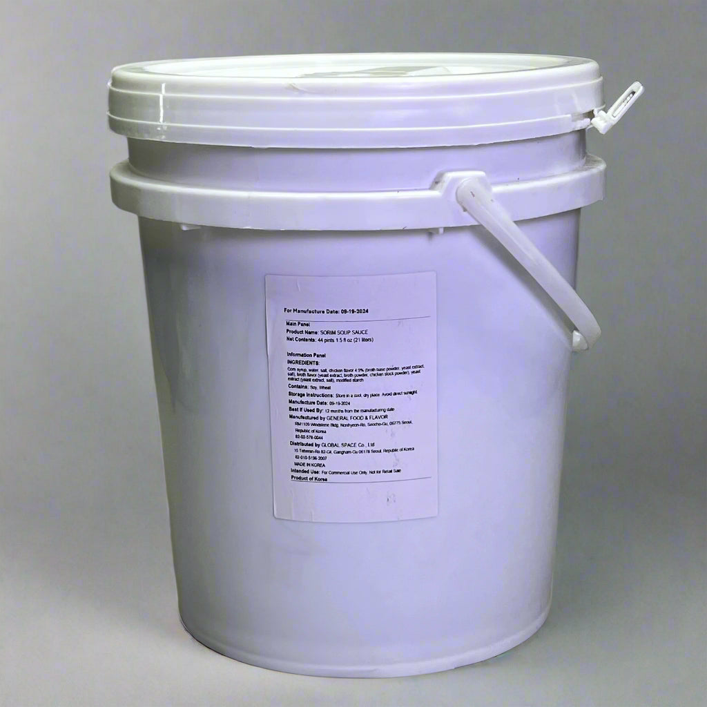 The GLOBAL SPACE Sorim Soup Sauce is a professional-grade seasoning solution packaged in a 21-liter white container, ideal for large-scale food preparation. Known for its rich umami flavor and versatile application, this sauce enhances the depth of soups, stews, broths, and marinades. Whether you're cooking in a restaurant, catering event, or food production environment, this bulk-sized container ensures consistent flavor and long-lasting supply. Easy to store and dispense, it's a practical staple for high-volume kitchens that demand authentic taste and efficiency.