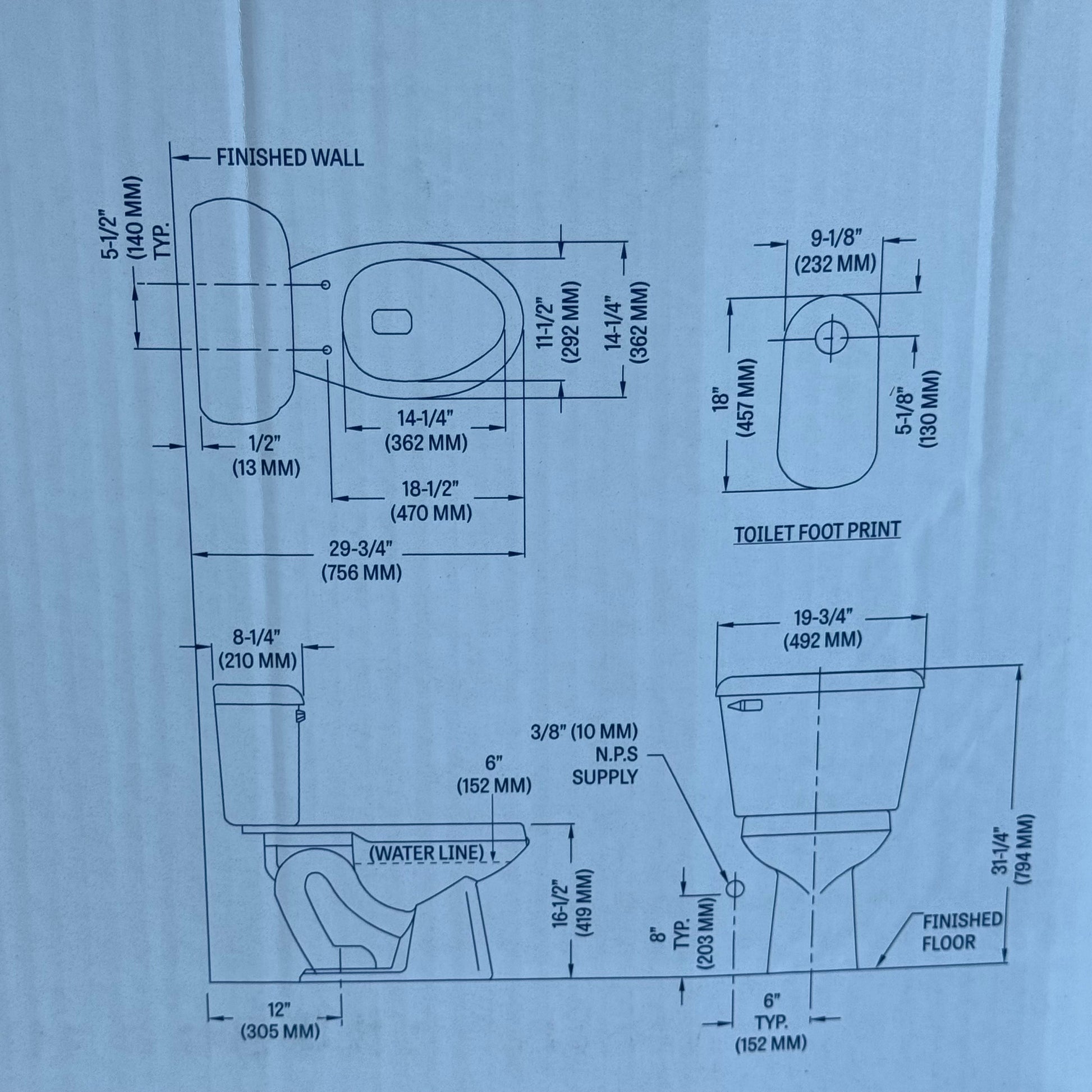 MANSFIELD Elongated Toilet Kit Sz 31 1/4” H x 19 3/4” W x 29 3/4” L 013710017
