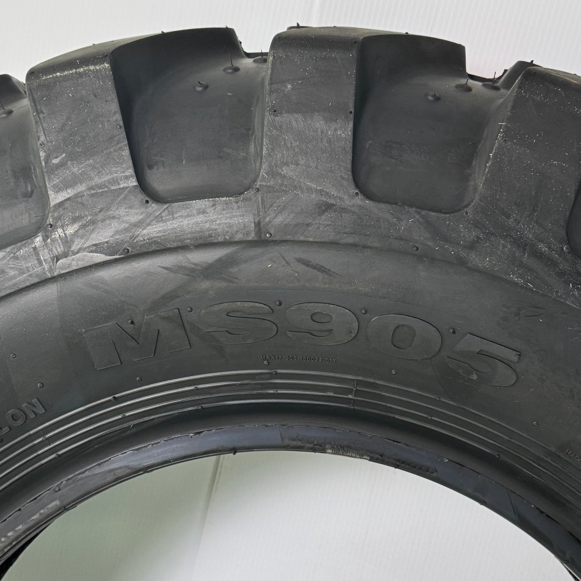 The MAXAM MS905 Industrial Tire (13.00-24) is engineered for exceptional performance and durability in demanding industrial environments. With its robust design, this tire provides excellent traction and stability, making it an ideal choice for construction, mining, and material handling equipment. The DOT marking ensures the tire complies with safety and quality standards, guaranteeing reliable performance. Designed with the toughness needed for heavy-duty machinery, the MS905 offers long-lasting durability in challenging conditions while maintaining superior grip and stability on rough terrain.