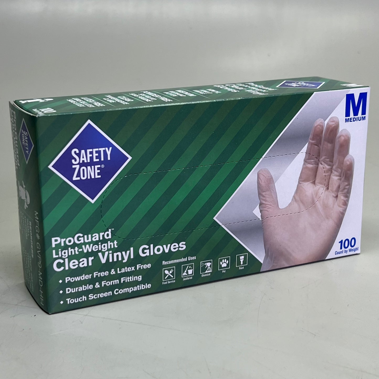 The SAFETY ZONE Clear Vinyl Gloves provide reliable protection with flexibility and comfort for a wide variety of tasks. This package contains 2 boxes of 100 gloves each, giving you a total of 200 gloves. Made from durable, flexible vinyl, these gloves are perfect for food handling, cleaning, light industrial work, or any task requiring disposable hand protection. The medium size ensures a comfortable fit for most hands, and the clear vinyl allows for high visibility while providing effective protection from contaminants. These gloves offer both practicality and an economical choice for frequent use.